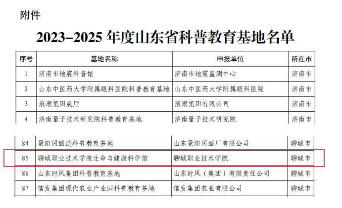 近日,山东省科协公布了“山东省科普教育基地(2023-2025年度)”名单,聊城职业技术学院生命与健康科学馆名列其中,这是该馆继2021年获得“山东省健康教育基地”称号之后再获殊荣。