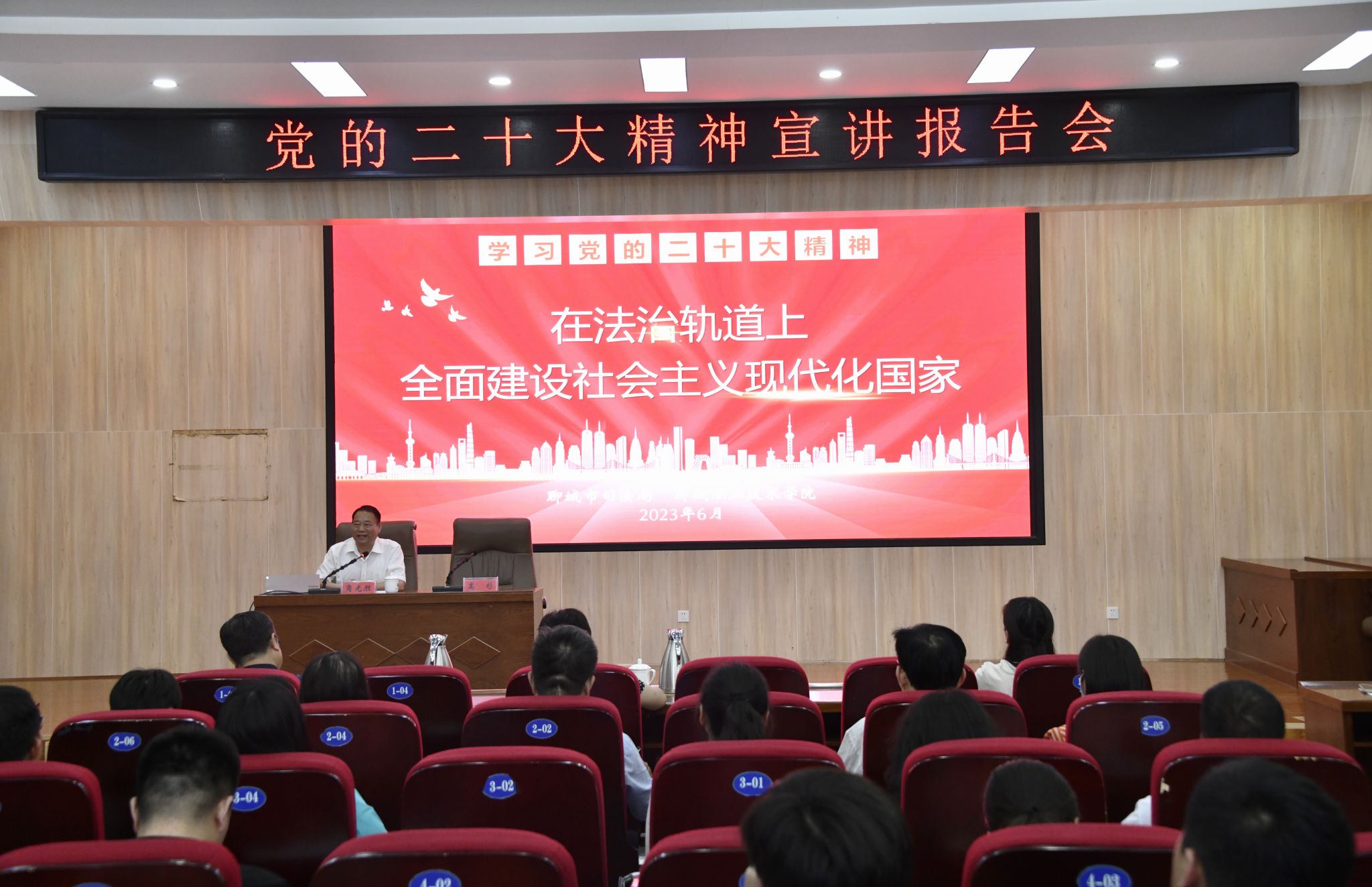 为深入学习贯彻党的二十大精神和习近平法治思想,进一步推进我校依法治教、依法治校工作,增强全体师生的法律意识和安全意识,推进思政课教师和辅导员一体化培训。6月15日,邀请聊城市司法局党组书记、局长,我校法治副校长商光胜,做法治宣讲报告。学校原党委委员、副院长,马克思主义学院名誉院长高杉出席。