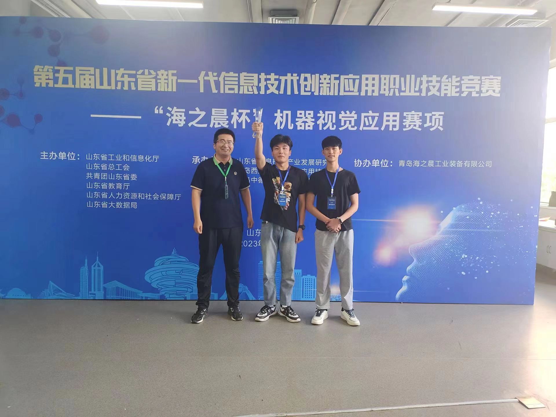 近日,山东省“技能兴鲁”职业技能大赛——第五届山东省新一代信息技术创新应用职业技能竞赛机器视觉应用赛项落下帷幕,经过激烈角逐,聊城职业技术学院杨清虎、徐一帅两位老师指导下,机电工程系李树铮、林国泰两位同学组成的参赛队获得一等奖。
