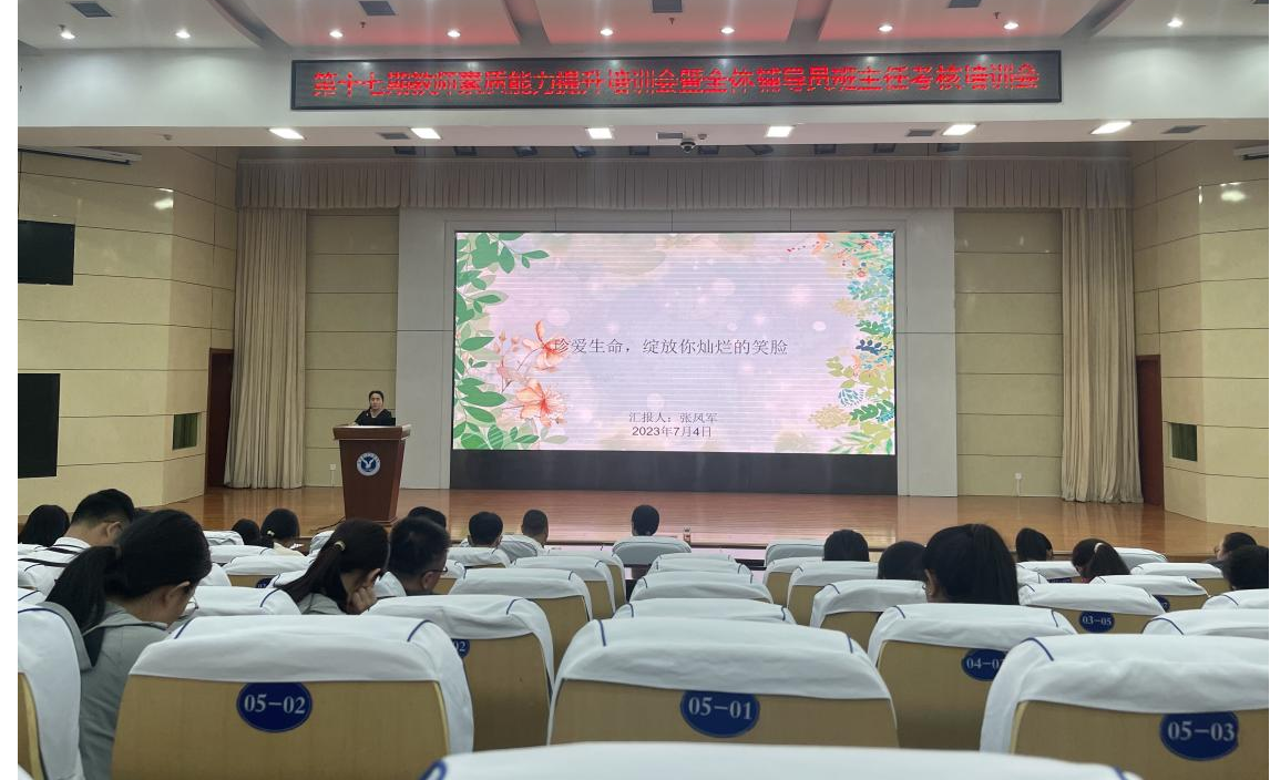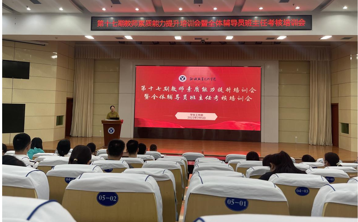 为切实加强学校辅导员、班主任队伍建设,总结本学期学生管理工作,促进辅导员、班主任业务水平和管理能力全面提升,7月5日,我校开展第十七期教师素质能力提升培训会暨全体辅导员班主任考核培训会,学校党委委员、副院长刘雪巍出席。