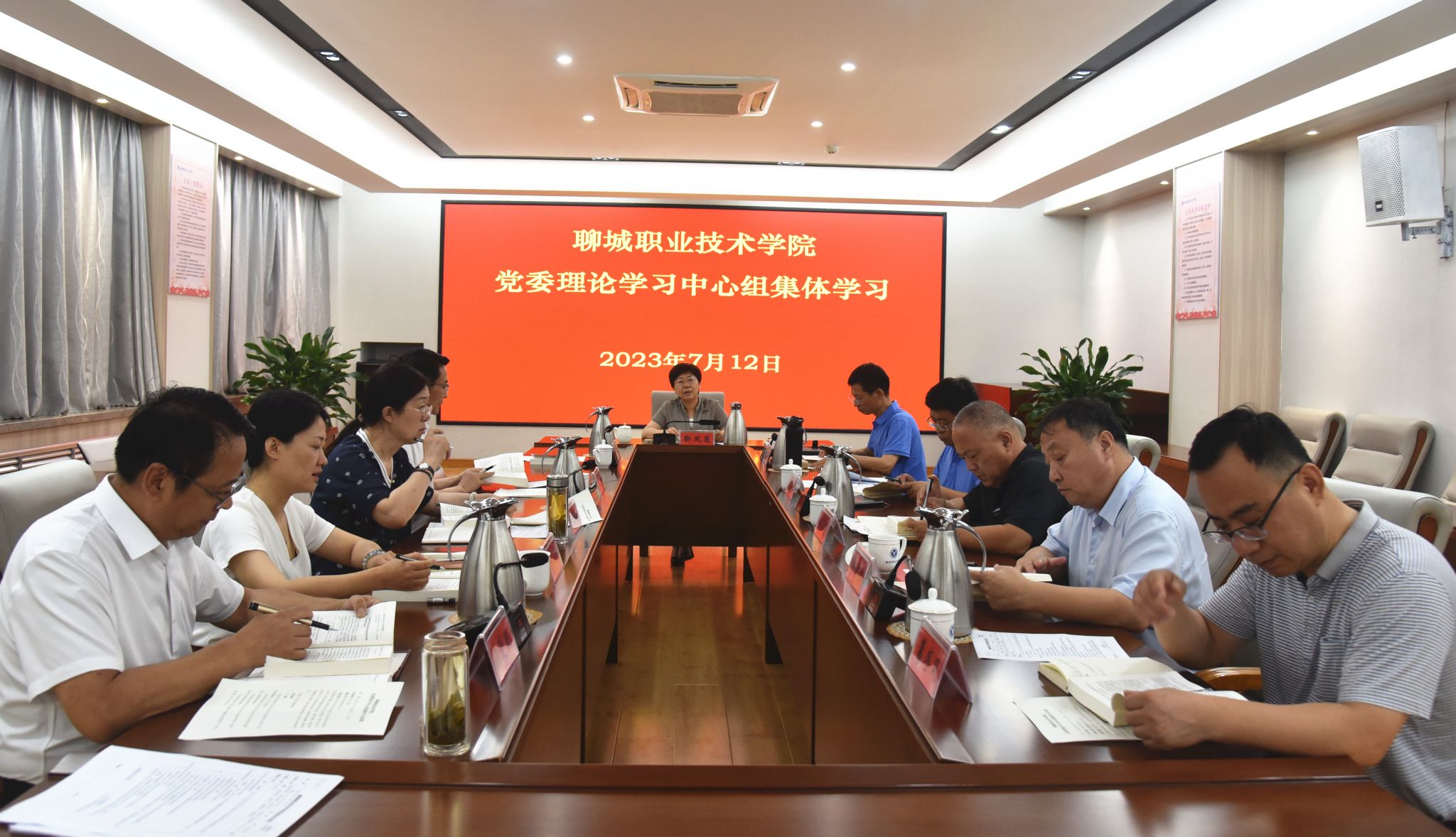 7月12日,聊城职业技术学院进行党委理论学习中心组集体学习。党委书记靳凤莲主持会议,党委副书记、院长徐龙海与党委领导班子全体成员参加学习。