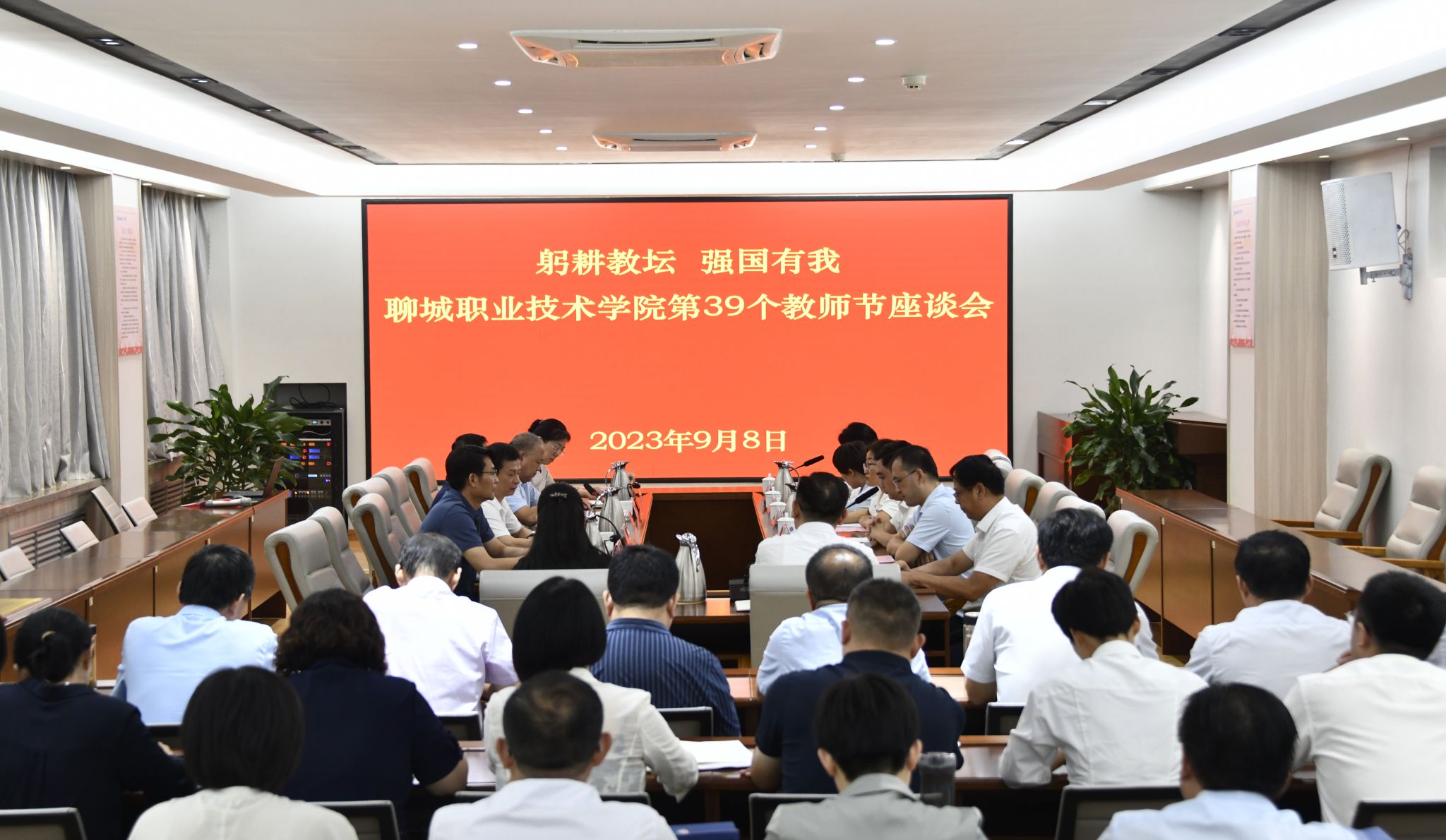秋风九月满园丹桂,潜心育人桃李芬芳。9月8日,聊城职业技术学院举办活动庆祝第39个教师节的到来。学校党委副书记、院长徐龙海及领导班子成员出席。活动由党委副书记赵存吉主持。