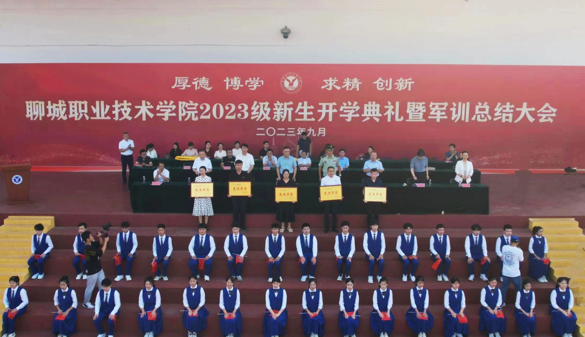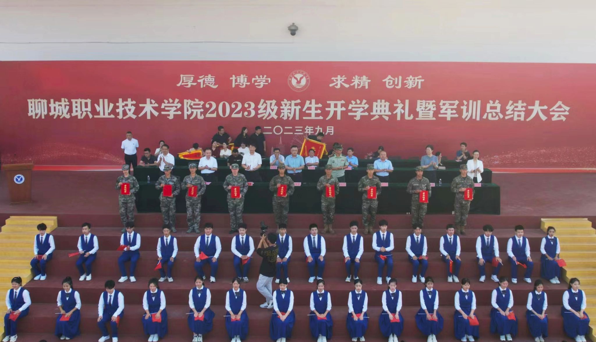 奋斗正当时,逐梦向未来。全体2023级新生队列整齐、精神抖擞,集体朗诵“聊职青年说”,立下“请党放心,强国有我”的铮铮誓言,表达将以军训培养的良好作风以及坚韧不拔的精神,开启青春奋斗的新征程。在《强军战歌》热血青春放歌中,聊城职业技术学院2023级新生开学典礼暨军训总结大会圆满结束。