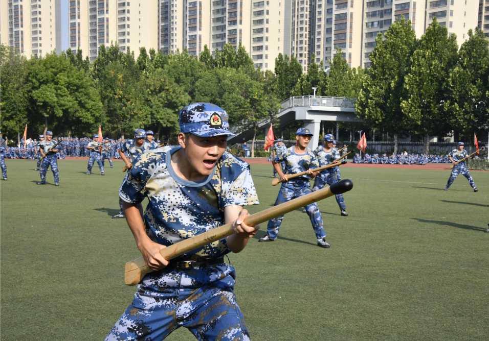 千琢璞为玉,百炼铁成钢。军事技能训练科目汇报中,刺杀操、女子匕首操、擒敌拳,红旗队、战术解救人质等展演精彩纷呈,博得现场阵阵掌声。分列式中,各方阵依次通过主席台,他们意气风发、步伐铿锵、气势如虹,展现新时代聊职学子蓬勃向上的风采。