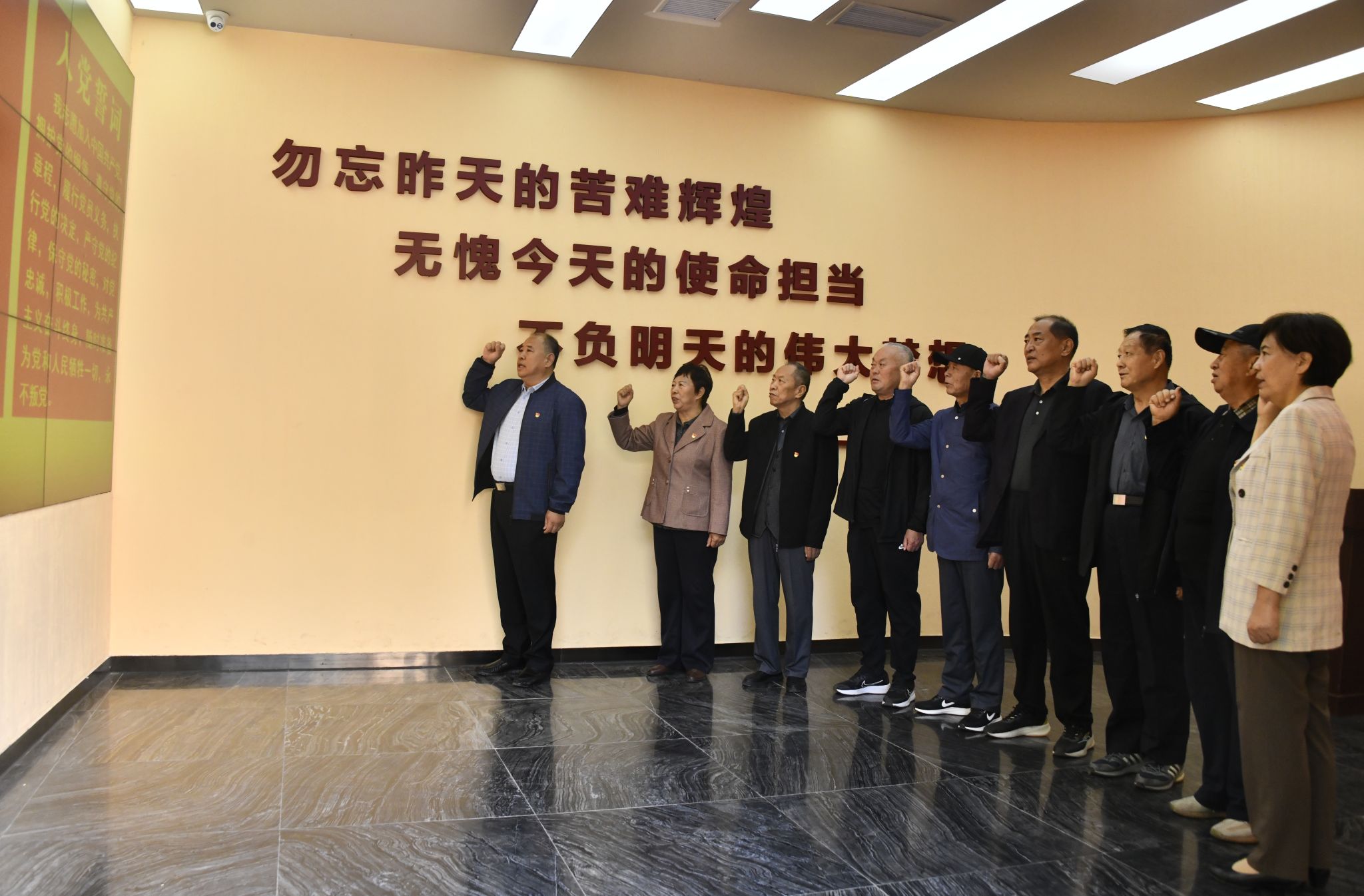 在徐龙海的陪同下,退休老领导、老教师首先参观了北校区的警务室、餐厅、心理健康教育指导中心、体育馆、智慧教室学校和南校区刚刚落成的聊城市仿真实训基地、智慧健康养老服务人才培养实训基地,并在参观鲁西“四史”主题教育馆结束后,重温了入党誓词。