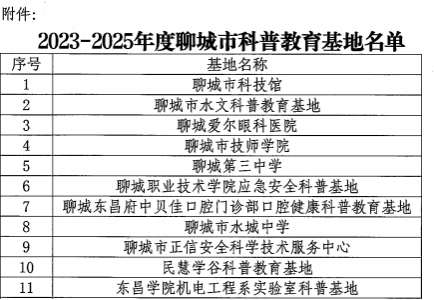 近日,聊城市科协公布“2023-2025年度聊城市科普教育基地”名单,聊城职业技术学院应急安全科普基地获批入选。