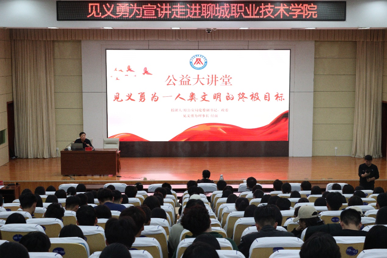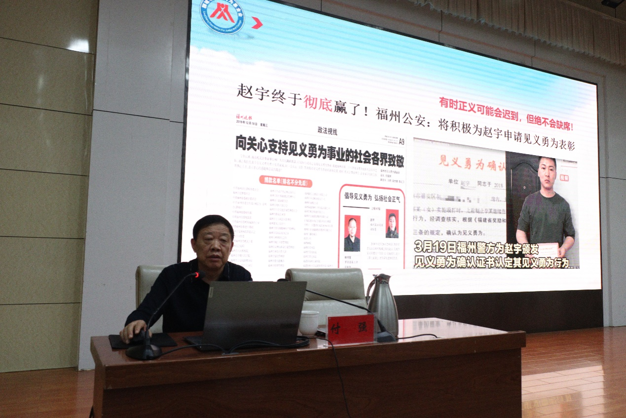 为深入学习宣传贯彻落实全国、全省见义勇为工作会议精神,大力倡导见义勇为精神,进一步弘扬社会正气,构建崇德向善、见义勇为的社会氛围,汇聚正能量。10月26日,聊城职业技术学院开展见义勇为宣讲。活动邀请原聊城市公安局政委、聊城市见义勇为基金会理事长、聊城市政法委系统关工委常务副主任付强为500余名师生作题为《见义勇为——人类文明的终极目标》的专题讲座。党委委员、副院长刘雪巍出席活动。