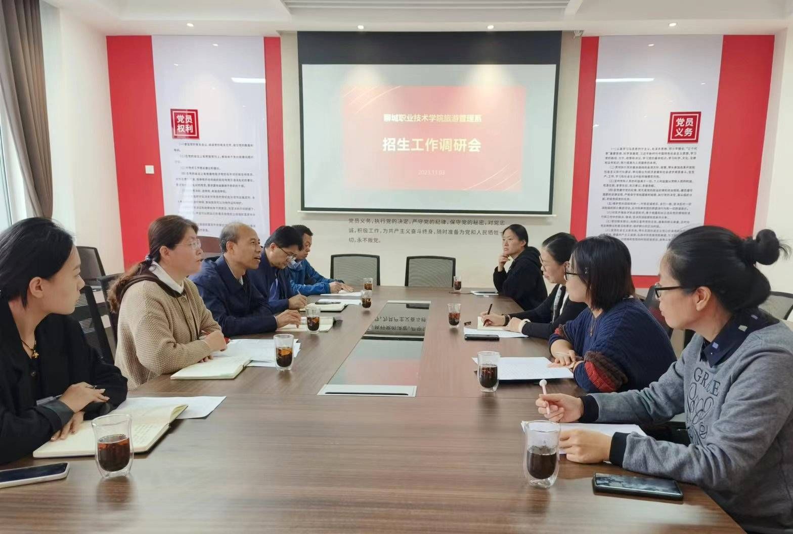 11月3日,学校党委委员、副院长高绪斌到旅游管理系开展招生工作调研。党委委员、宣传部部长卢萍参加活动。