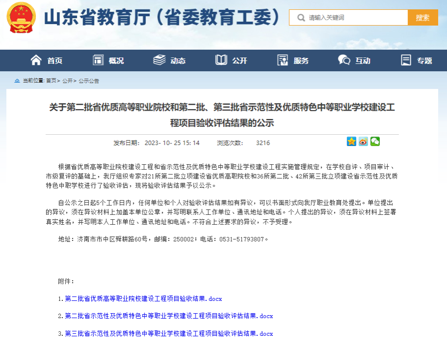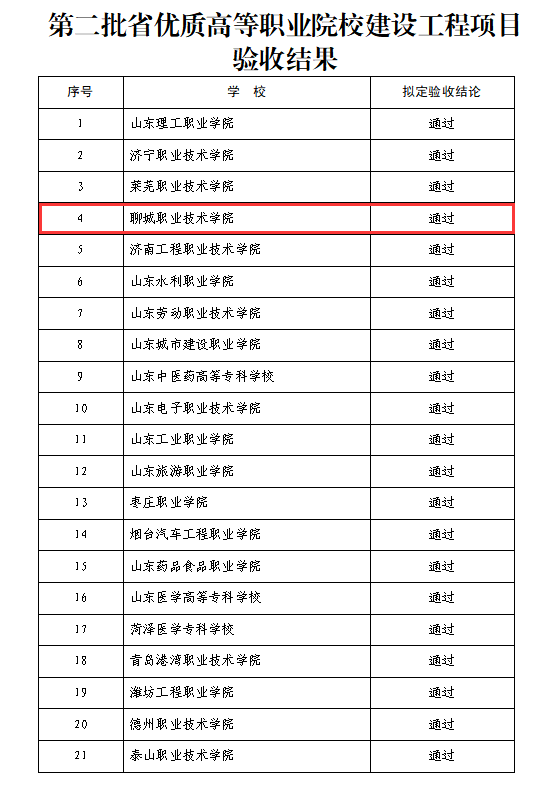 近日,山东省教育厅公示了第二批省优质高等职业院校建设工程项目验收结果,聊城职业技术学院以优异的成绩顺利通过验收。
