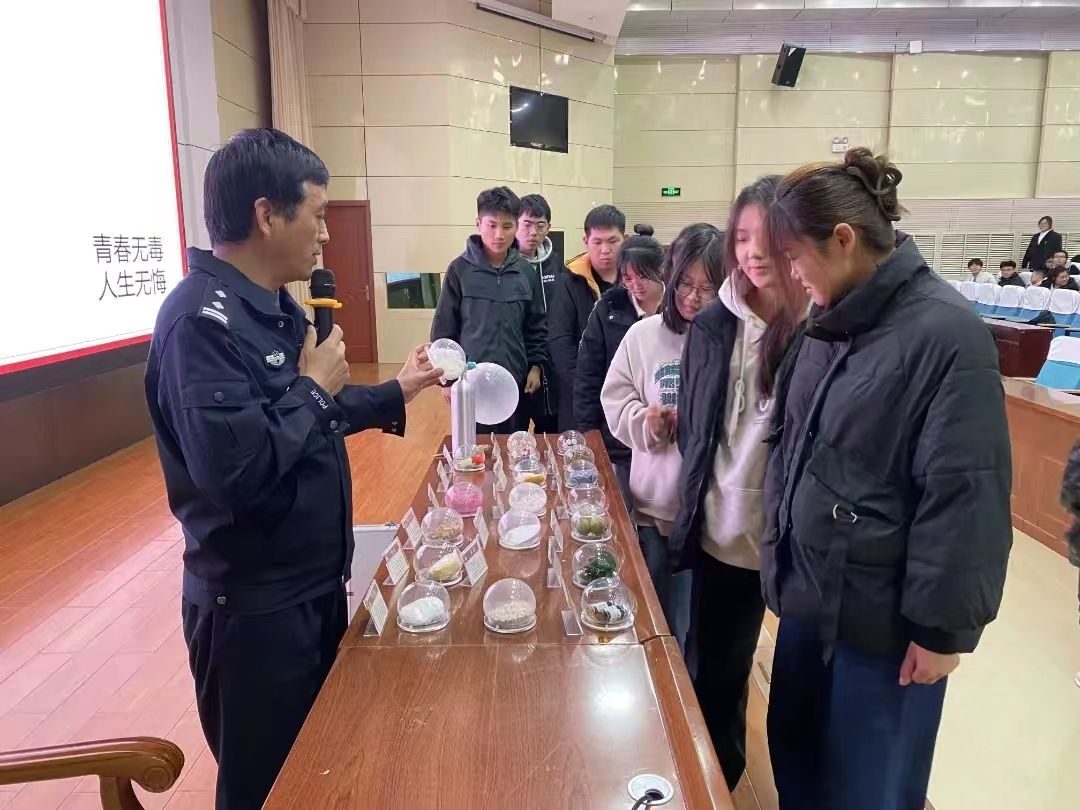 讲座结束后,组织学生现场参观了毒品(仿制品)展览,以直观体验的方式认识到各式各样的毒品形态,进一步强化了学生甄别及远离毒品的意识。