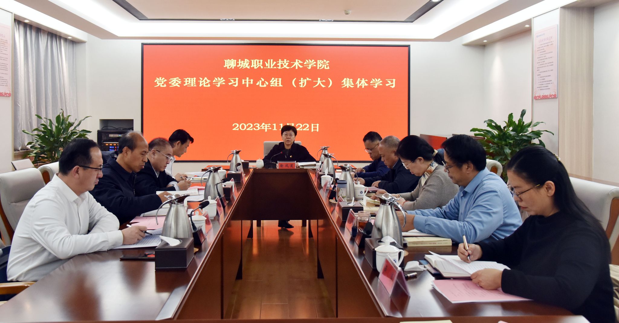 11月22日,聊城职业技术学院进行党委理论学习中心组(扩大)集体学习。会议由党委书记靳凤莲主持,学校领导班子全体成员参加学习。