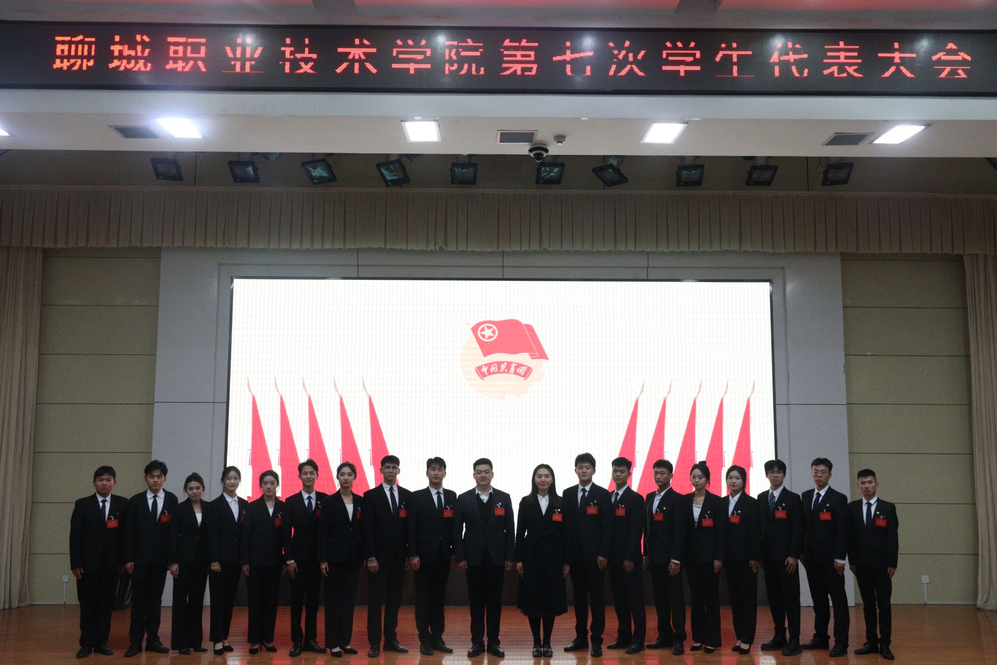 闭幕会上,2023届学生会主席团成员和学代会常任代表进行了集体亮相,校团委副书记张博文致闭幕词。伴着《光荣啊,中国共青团》歌声,聊城职业技术学院第七次学生代表大会胜利闭幕。
