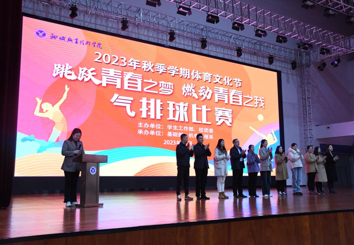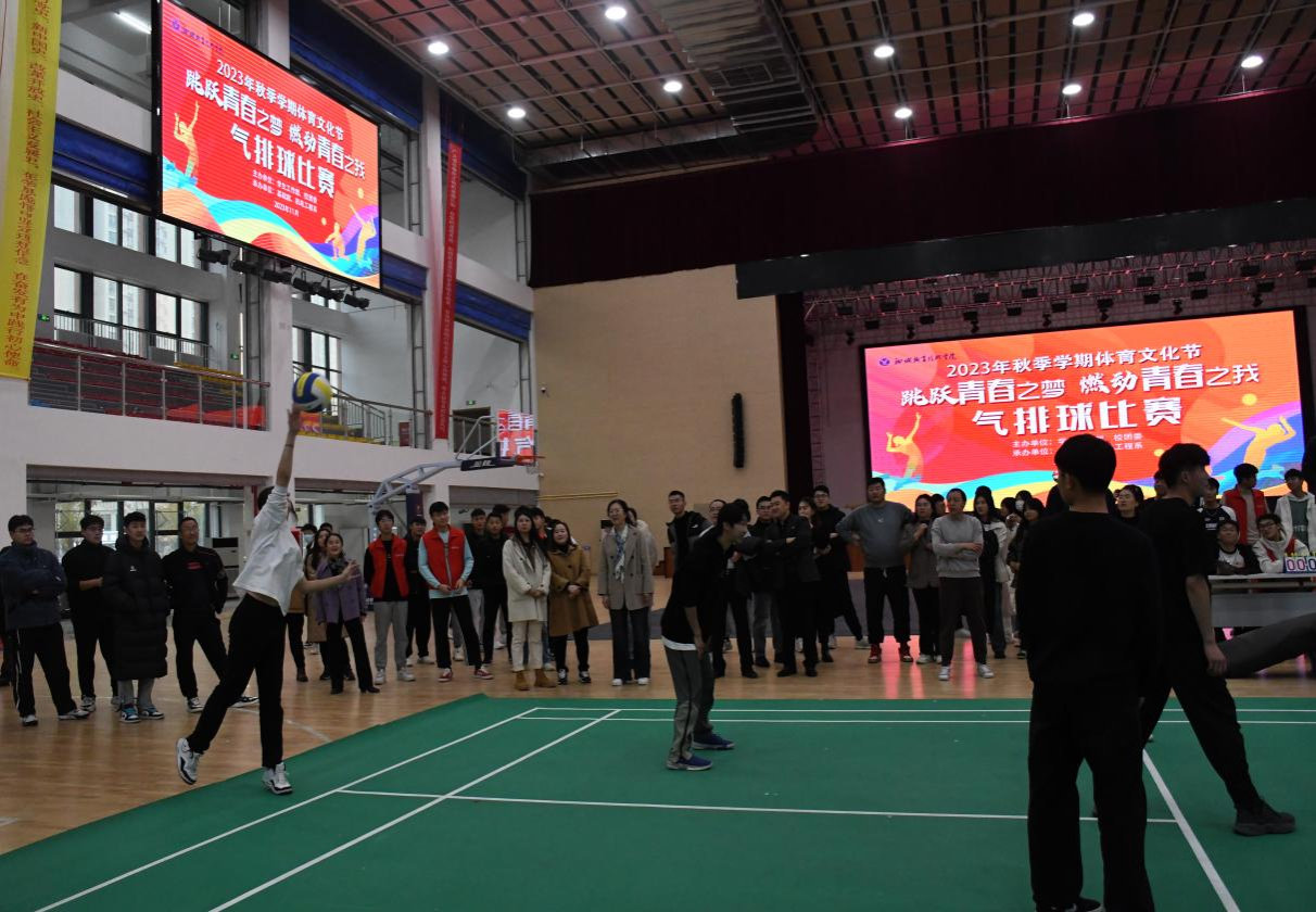 为进一步推进校园体育文化建设,促进学生养成积极主动的体育锻炼习惯,11月27日,2023年秋季学期体育文化节“跳跃青春之梦 燃动青春之我”气排球比赛开赛。学校党委委员、副院长刘雪巍出席活动。