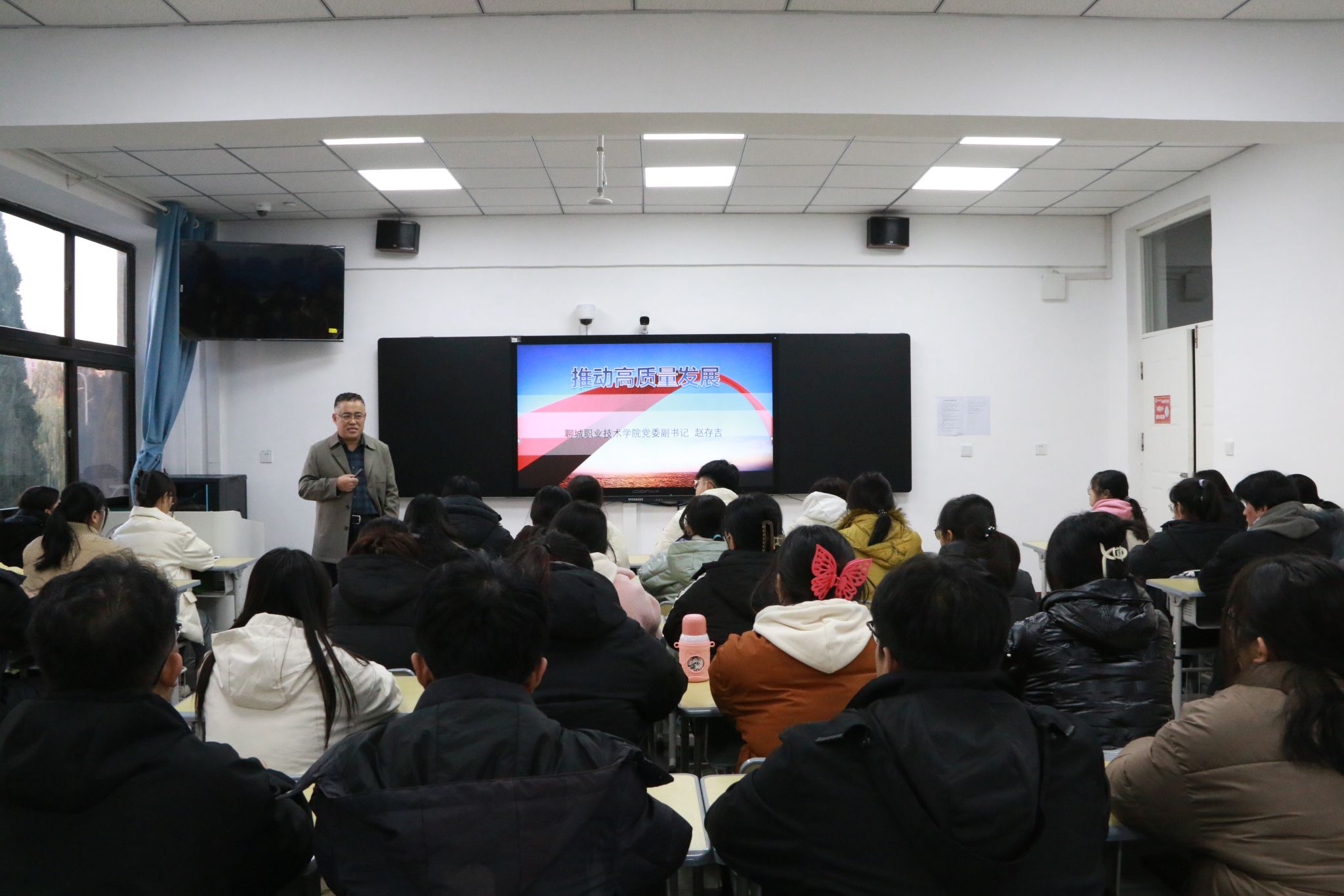 11月30日,聊城职业技术学院党委副书记赵存吉为护理系学生讲授形势与政策课。