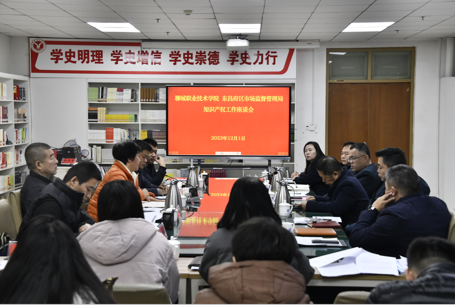 12月1日,聊城市东昌府区市场监督管理局副局长尹立平一行人来聊城职业技术学院开展知识产权工作的调研。学校党委副书记赵存吉陪同座谈。