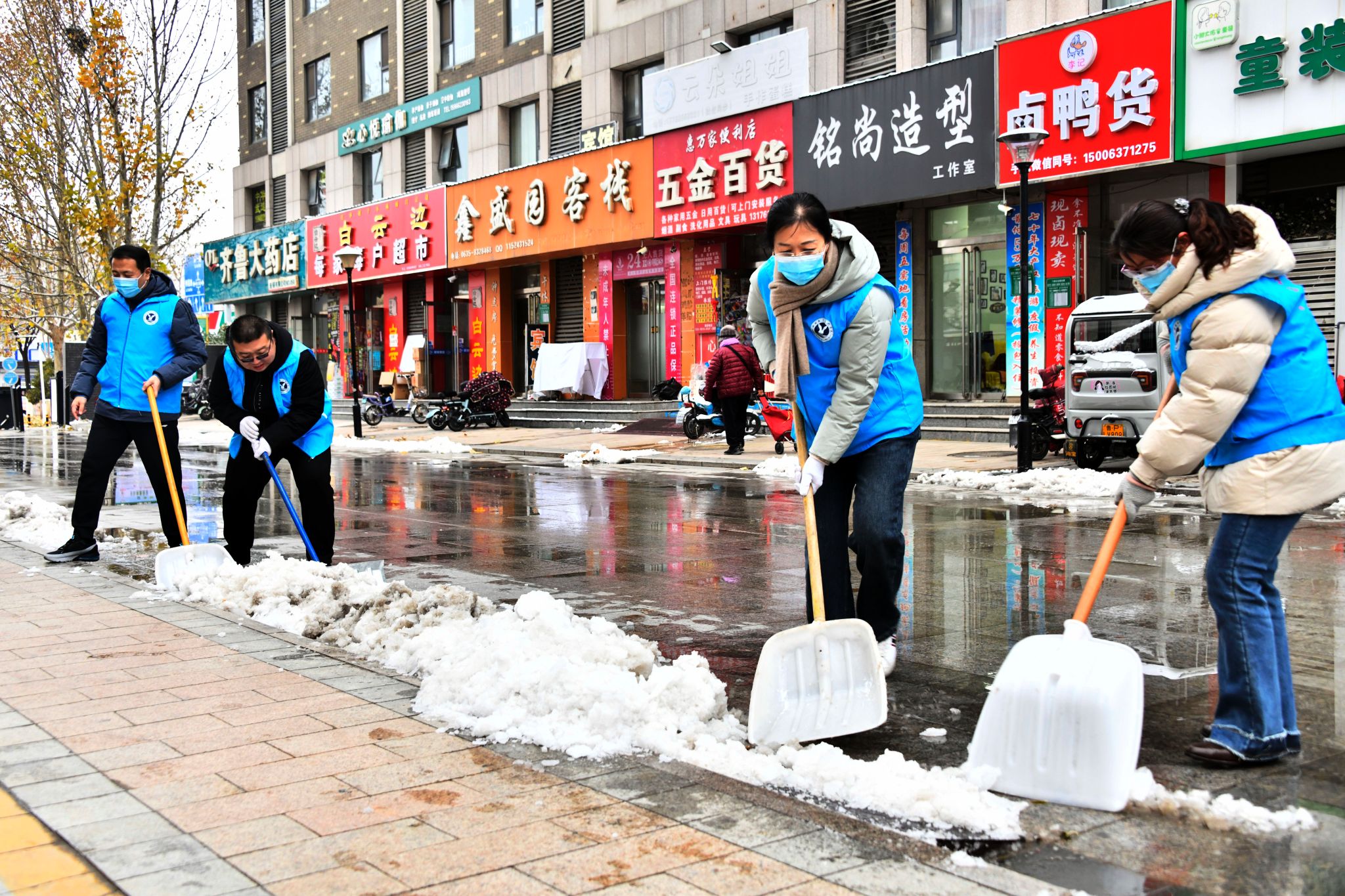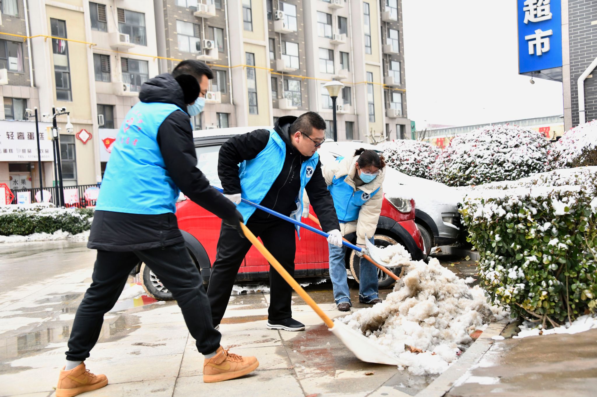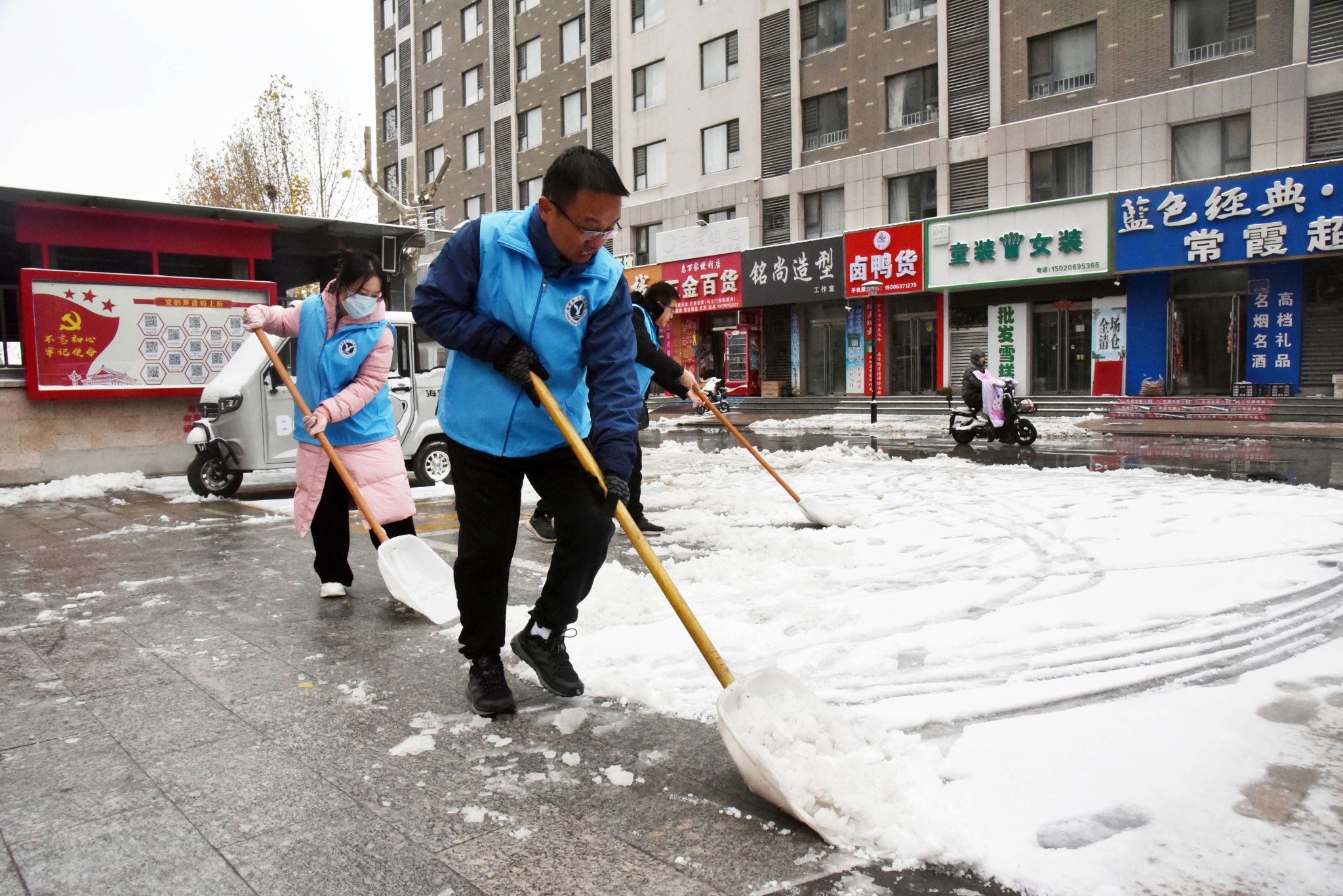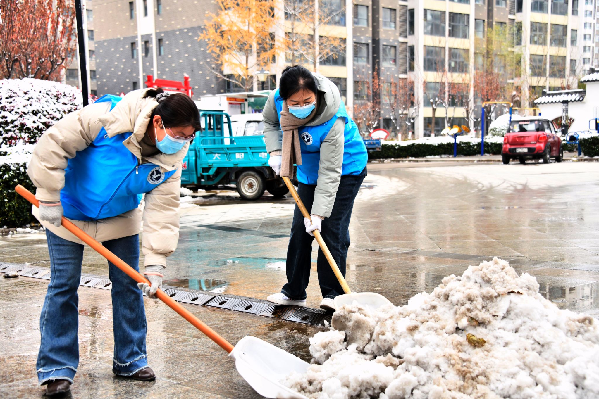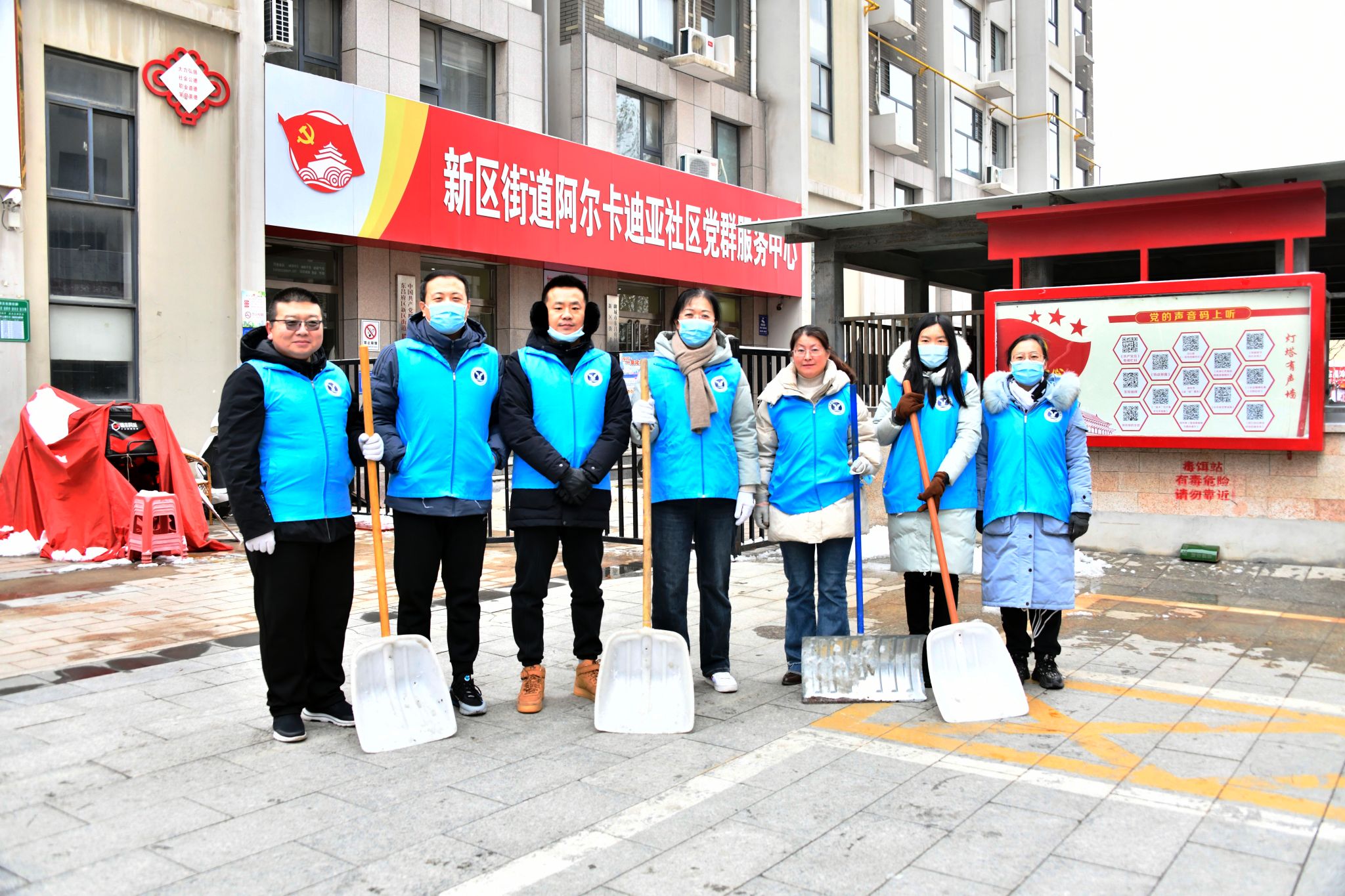 党委委员、副院长刘雪巍带领机关党支部的部分志愿者,走进学校结对帮扶的阿尔卡迪亚社区清除冰雪。