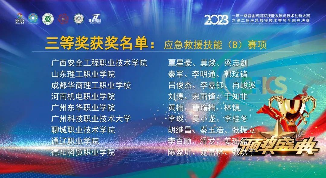 12月18日,2023“一带一路”暨金砖国家技能发展与技术创新大赛应急救援技术赛项(B赛项)全国总决赛在南京举行,聊城职业技术学院学子荣获该赛项全国三等奖。