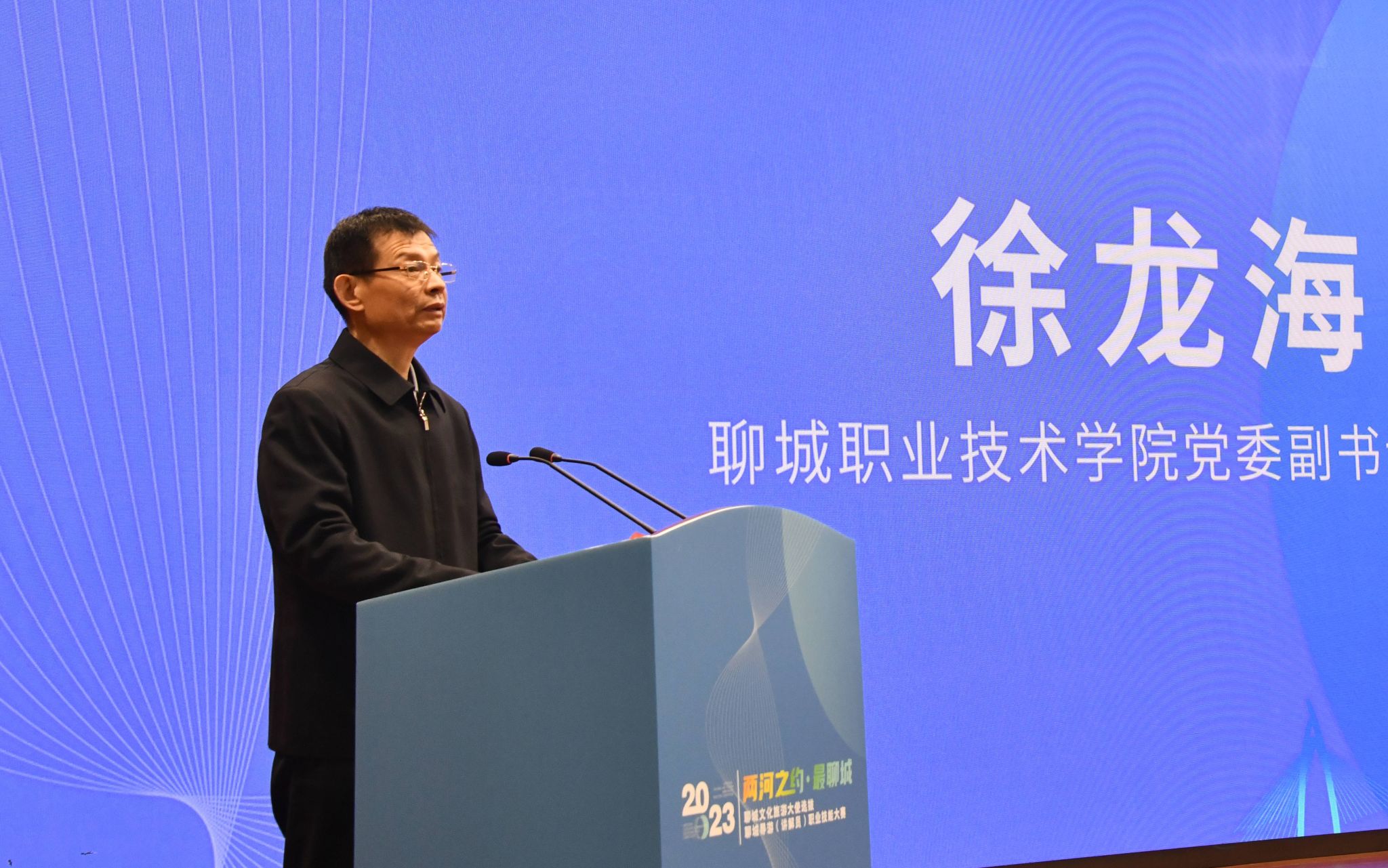 12月24日,“两河之约·最聊城”2023聊城文化旅游大使选拔暨导游(讲解员)职业技能大赛颁奖典礼在聊城职业技术学院举办。此次大赛是“两河之约”文旅品牌推广营销的鲜活案例,更是吸纳优秀文旅人才,助力聊城文旅融合高质量发展的重要举措。山东旅游职业学院党委书记闫向军,中国旅行社协会副会长、山东省旅行社协会会长王延辉,聊城职业技术学院党委副书记、院长徐龙海,聊城市文化和旅游局党组书记、局长周江涛,市、县(市、区)文化和旅游局主要负责同志出席大会。