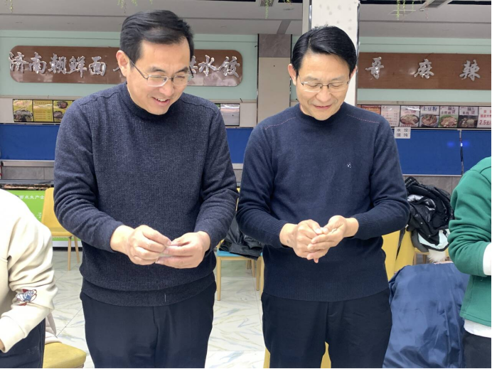 李继峰与学生们一起包饺子,共话家常,其乐融融。他勉励同学们要传承和发扬优秀传统文化,在外求学也要关心家人并及时送上节日祝福。一盘盘热腾腾的饺子陆续被端上餐桌,大家一同品尝饺子,交流畅谈,气氛温馨。