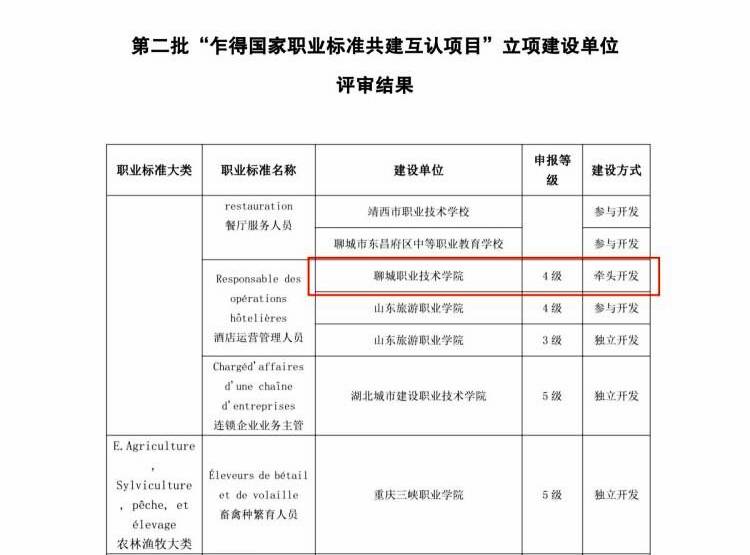 1月8日,第二批“乍得国家职业标准共建互认项目”立项建设单位评审结果公布,聊城职业技术学院牵头开发的“酒店运营管理人员4级”职业标准项目成功立项,现已进入实施阶段。该项目是我校旅游管理系继立项“坦桑尼亚国家职业标准开发项目”后,第二次参与国际职业标准开发项目。