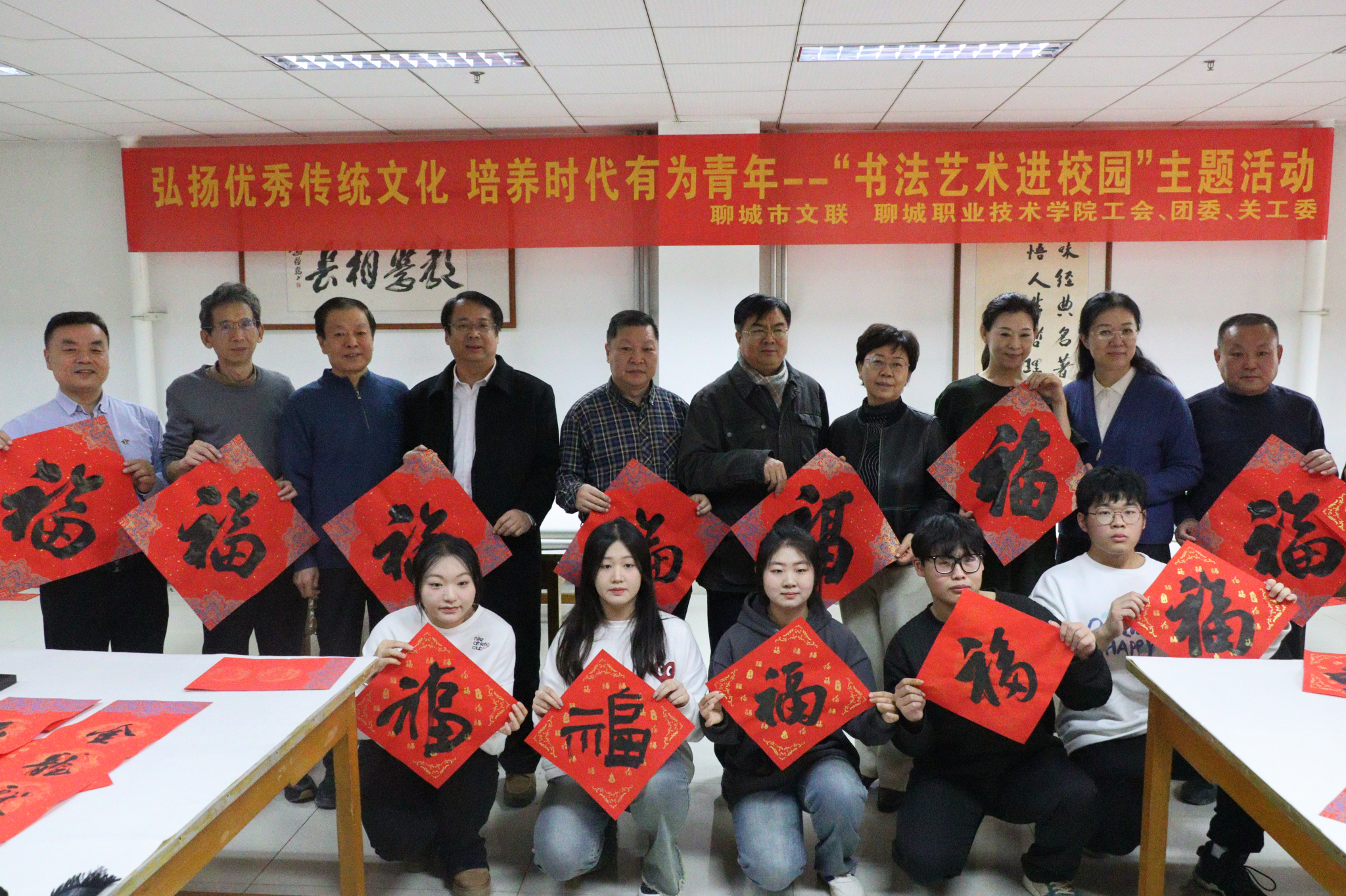 为进一步传承优秀传统文化,培养德智体美劳全面发展的时代新人,营造良好的校园文化氛围。1月10日,由聊城市文学艺术界联合会和聊城职业技术学院工会、团委、关工委共同举办的弘扬优秀传统文化 培养时代有为青年“书法艺术进校园”主题活动在南校区图书馆举行。学校党委书记、关工委主任靳凤莲,聊城市文联二级调研员张戈,学校党委委员、副院长、关工委副主任、副秘书长刘雪巍,党委委员、统战部部长崔爱民,市文联组联部主任、四级调研员张小军和学校书法爱好者、离退休老干部、“五老”志愿者、辅导员、学生代表共同参加活动。