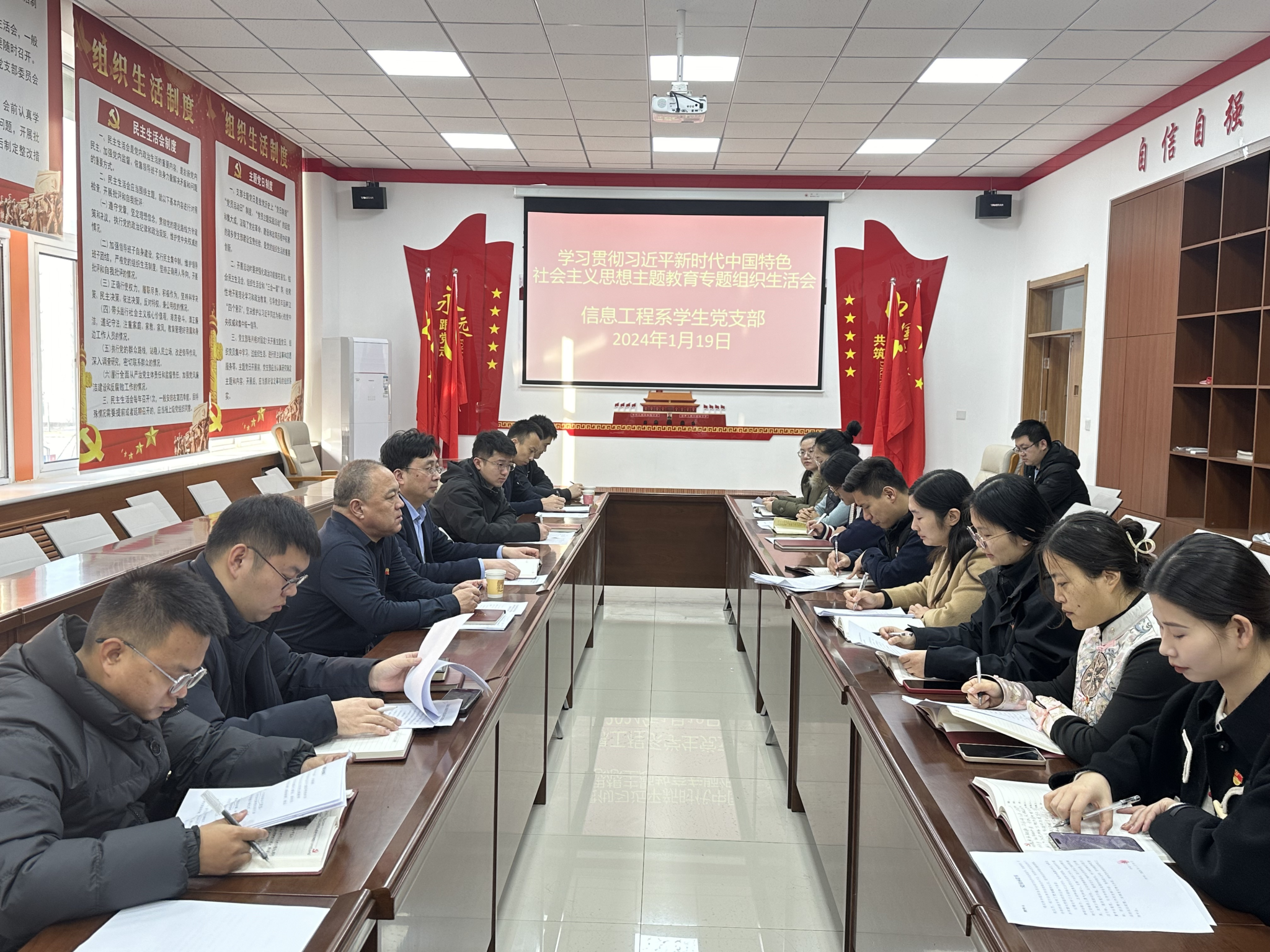 为深入学习贯彻习近平新时代中国特色社会主义思想,按照学校党委部署,1月19日,信息工程系学生党支部在党员活动室召开学习贯彻习近平新时代中国特色社会主义思想主题教育专题组织生活会。党委委员、副院长许广元列席指导。纪委、组织部相关人员列席会议。