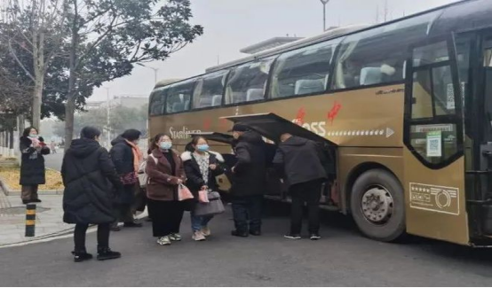 车外寒意袭人,车内充溢着温暖。为最大限度保障学生安全,缩短出行时间,学校还为返乡学生提供暖心送站服务,将学生送往汽车总站—火车站—高铁站,爱心大巴车把学生点对点逐一安全送达。