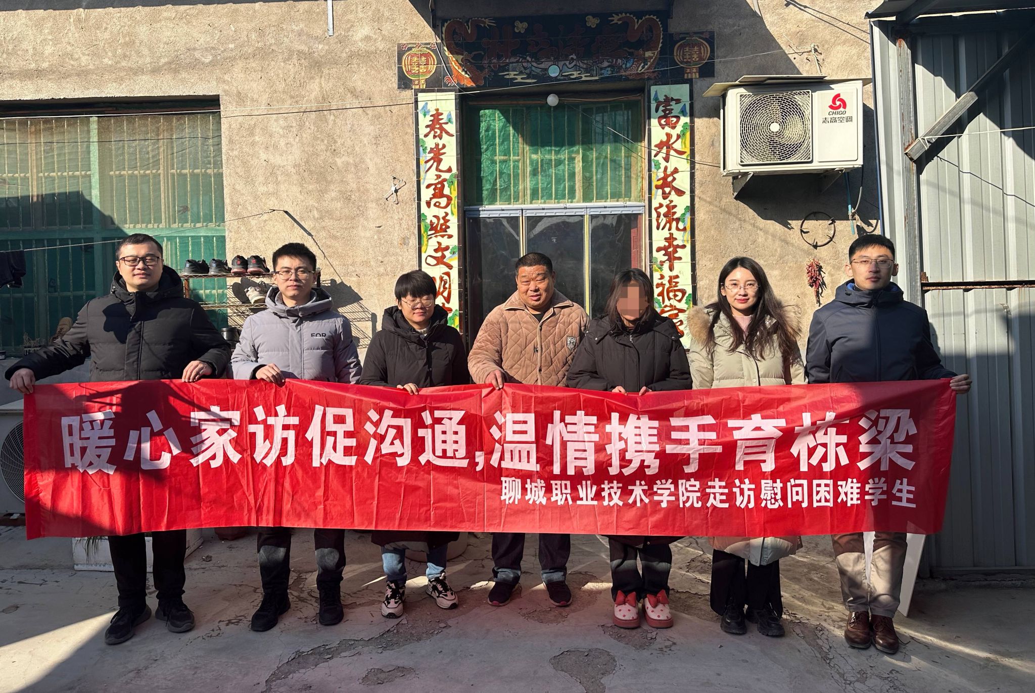 习近平主席在二〇二四年新年贺词中指出:“我们的目标很宏伟,也很朴素,归根到底就是让老百姓过上更好的日子。”宣传党的路线、方针、政策下基层,调查研究下基层,信访接待下基层,现场办公下基层,是习近平同志在福建宁德工作时大力倡导并身体力行形成的工作方法和工作制度。“四下基层”,来到的是基层,抵达的是民心,夯实的是根基。寒假伊始,聊城职业技术学院学团队伍百余名辅导员(班主任),组建7支走访慰问团队,由学生工作部主要负责人带队,走访慰问聊城东昌府区、冠县、临清、高唐、阳谷,济南、菏泽、济宁、泰安、河南等地,行程5000公里,访民情、解民忧、暖民心、传党恩,实地走访慰问60余名家庭经济困难学生。