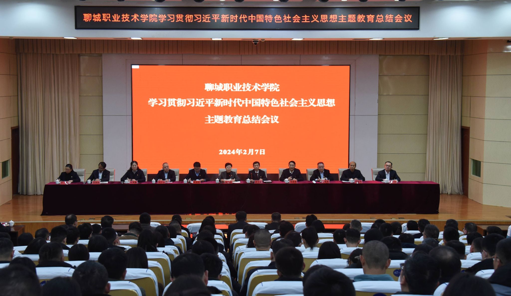 2月7日,聊城职业技术学院召开学习贯彻习近平新时代中国特色社会主义思想主题教育总结会议,深入学习贯彻习近平总书记关于主题教育的重要讲话和重要指示批示精神,传达学习党中央和省委、市委有关会议要求,总结学校主题教育成效经验,对进一步巩固拓展主题教育成果进行安排部署。