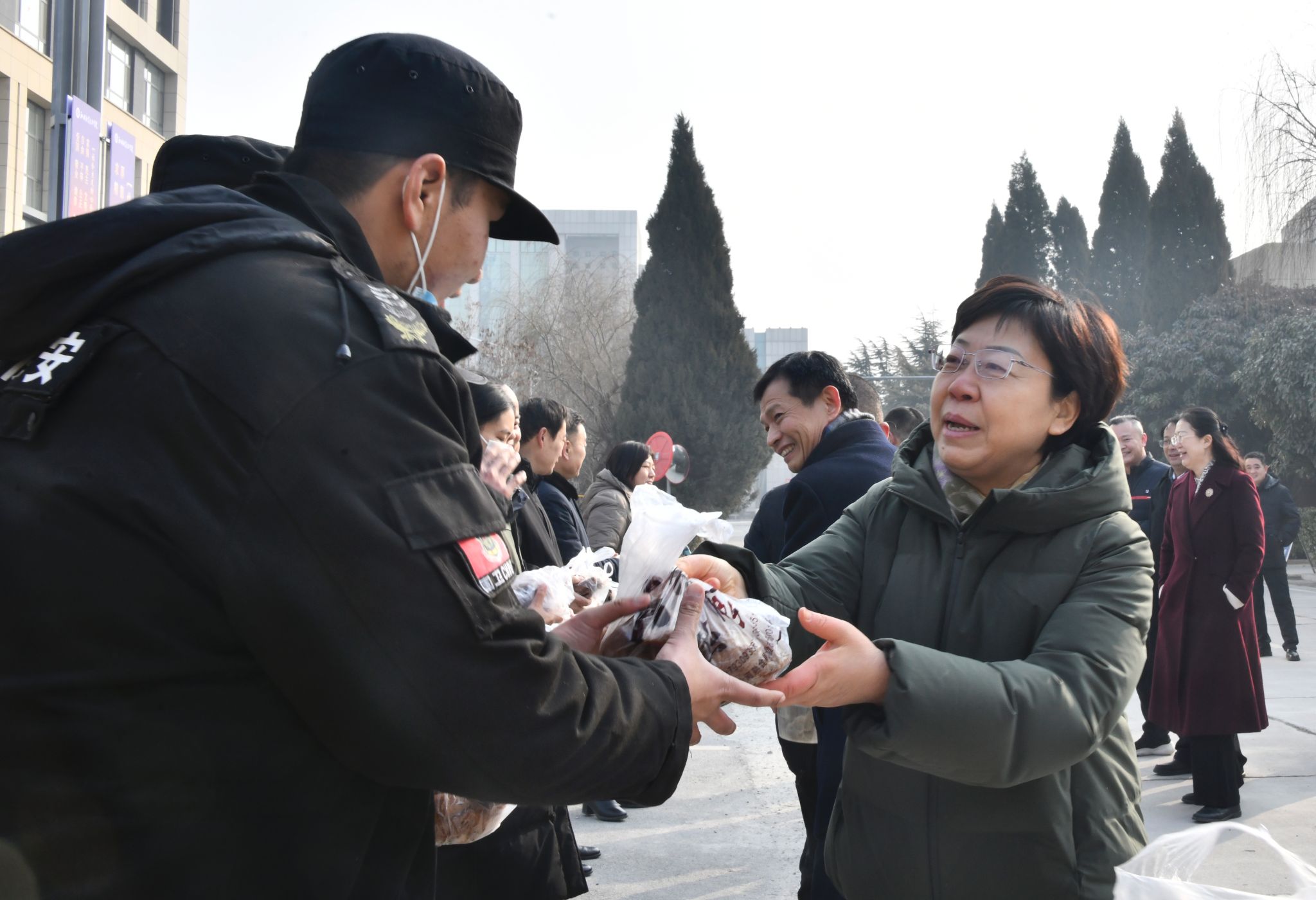 “大家辛苦了,祝你们和家人新春快乐,龙年大吉!”校领导来到保安执勤岗、物业管理中心和校医院,看望慰问坚守一线的员工,向他们致以节日问候和新春祝福,并送上慰问品。