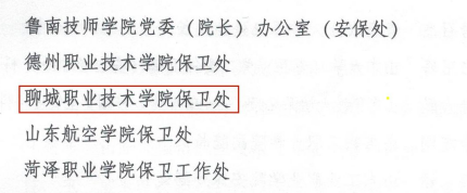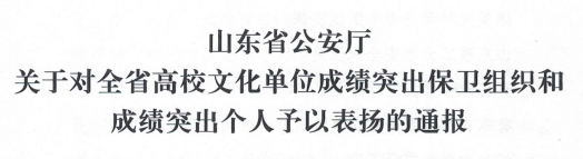 近日,山东省公安厅下发《关于对全省高校文化单位成绩突出保卫组织和成绩突出个人予以表扬的通报》(鲁公通〔2024〕13号),聊城职业技术学院保卫处被评为“山东省高校文化单位成绩突出保卫组织”。