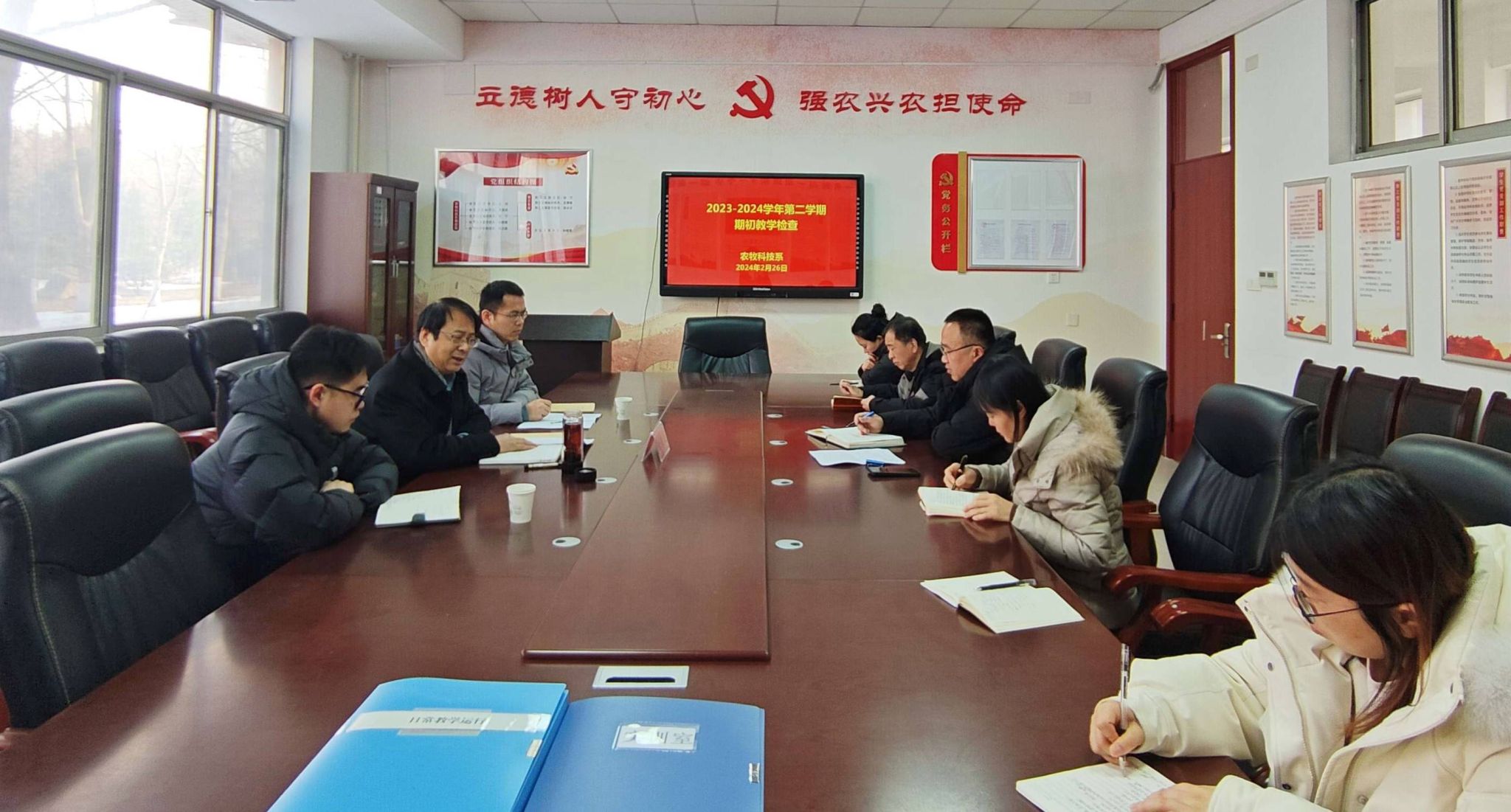 为全面了解新学期开学准备情况,做好师生服务保障工作,推动系部“聚力攻坚突破”。2月26日,开学第一天,学校党委委员、统战部部长崔爱民深入农牧科技系,检查期初教学准备,指导新学期工作,并到课堂进行听课。