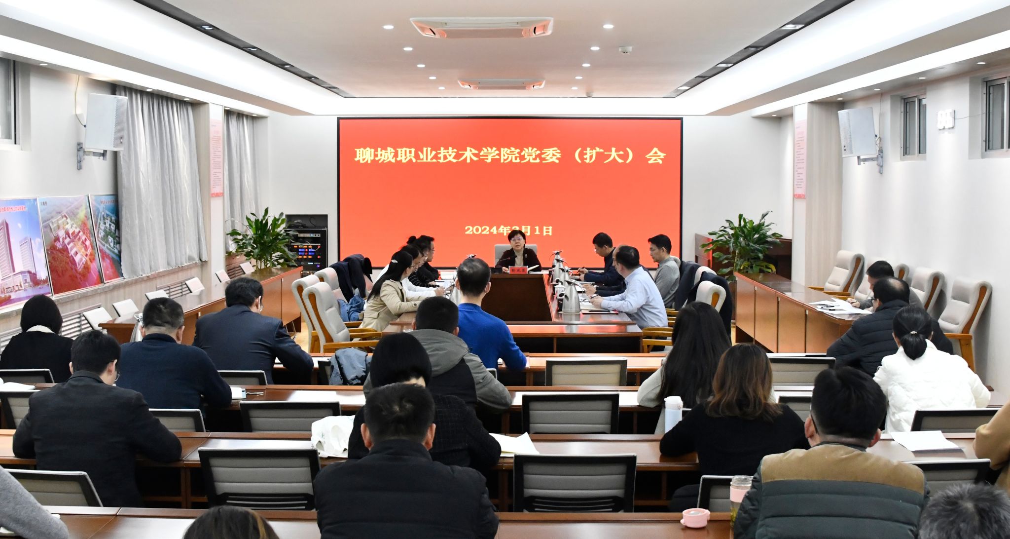 3月1日,聊城职业技术学院召开党委扩大会议,传达贯彻2024年全省教育工作会议精神,对校园安全工作进行再部署再落实。学校党委书记靳凤莲出席会议并讲话。全体领导班子成员参加会议。