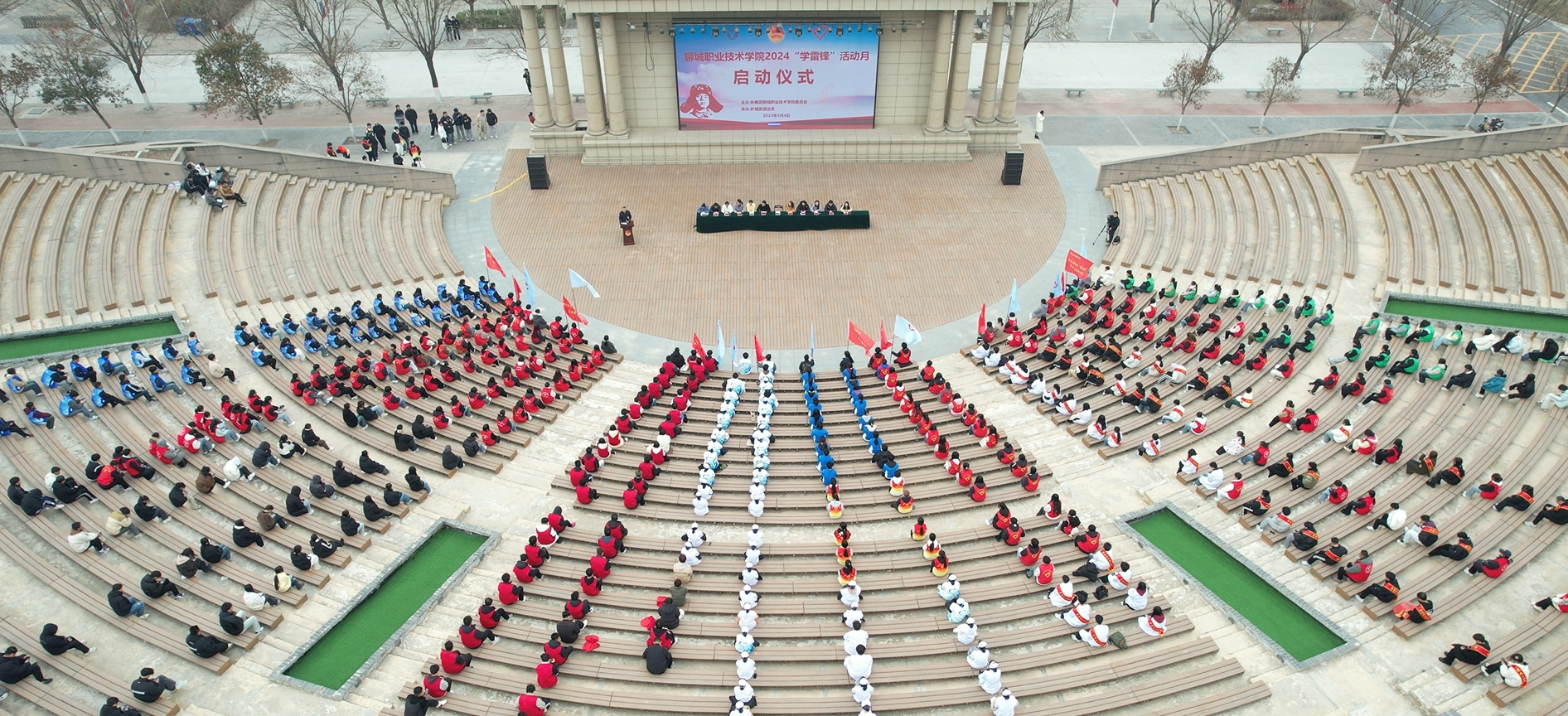 在全国第61个学雷锋纪念日和第25个“中国青年志愿者服务日”即将到来之际,为深入贯彻落实习近平总书记关于弘扬雷锋精神的重要论述,深刻把握雷锋精神的时代内涵,引领我校广大青年在志愿服务实践中大力弘扬“奉献、友爱、互助、进步”的志愿精神,聊城职业技术学院团委在学校海源广场举行2024年“学雷锋”活动月启动仪式暨优秀志愿服务项目展示活动。学生工作部、校团委主要负责人,各院系团总支主要负责人,辅导员代表、志愿者代表700余人参加启动仪式。