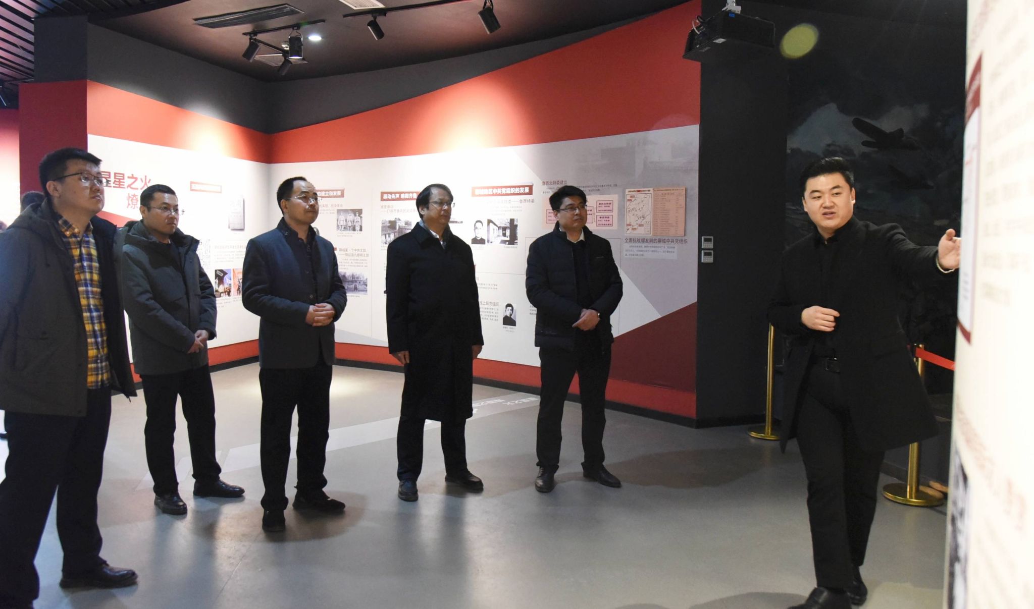 座谈会后,朱景洋一行参观了鲁西“四史”主题教育馆。在张博文详细的讲解下,客人们在“鲁西优秀传统文化”“镰刀锤头下的奋斗历程”“聊职风采”等主题展馆驻足聆听。参观程中,双方还就党性教育馆、校史馆的建设及发展进行了充分交流。