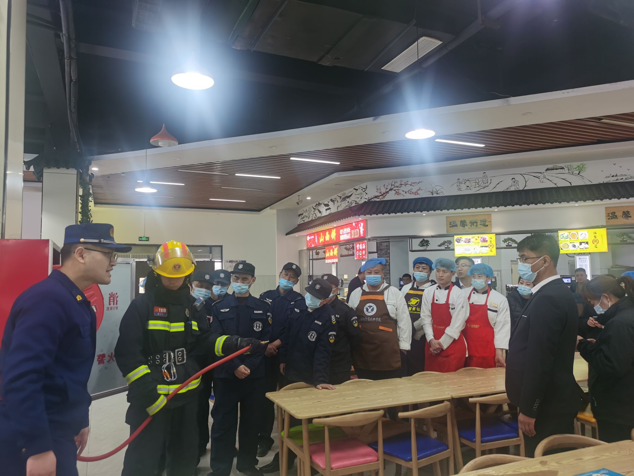 演练结束后,消防员结合餐厅实际情况,进行室内消火栓等消防设备使用方法教学,并对各单位消防安全责任人进行强化培训。