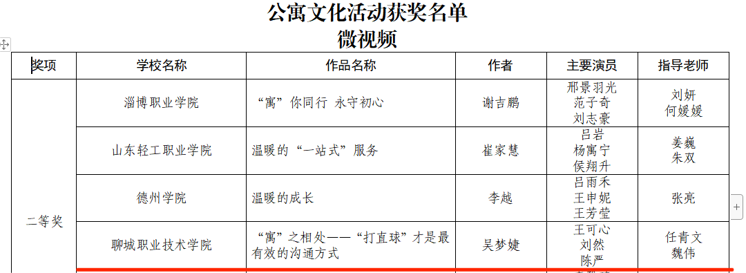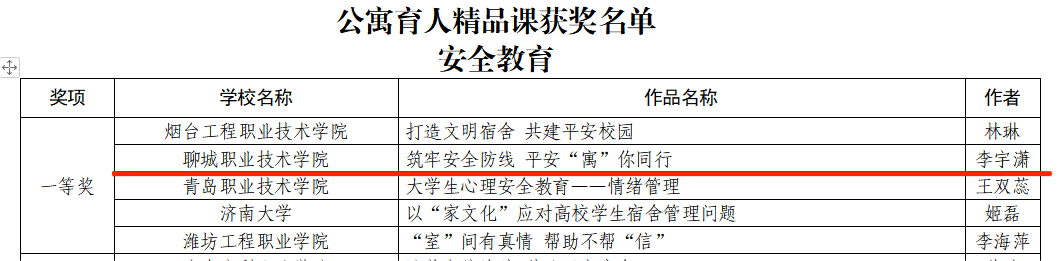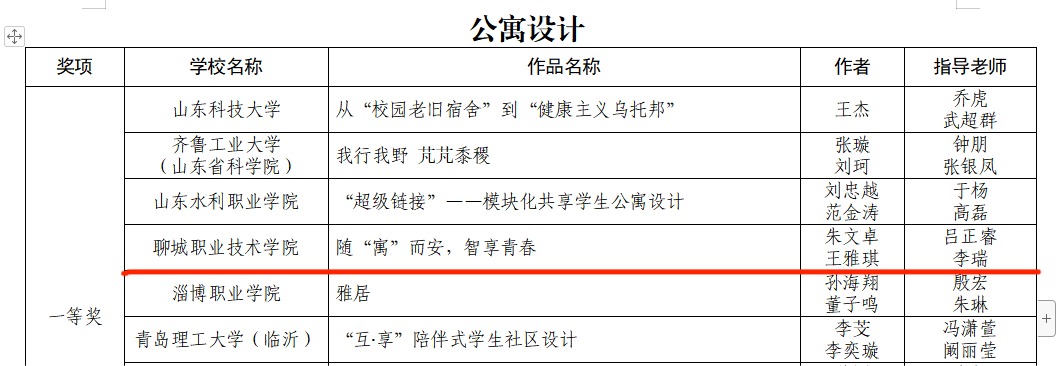 日前,山东省教育厅主办的2023年高校“公寓的故事”主题系列活动评选结果公布。聊城职业技术学院选送的公寓育人精品课《筑牢安全防线平安与你同行》获一等奖;公寓设计《随“遇”而安 智享青春》获一等奖,《“聊”“寓”壹站——“一站式”学生社区设计》获二等奖;微视频《“寓”之相处——“打直球”才是最有效的沟通方式》获二等奖。