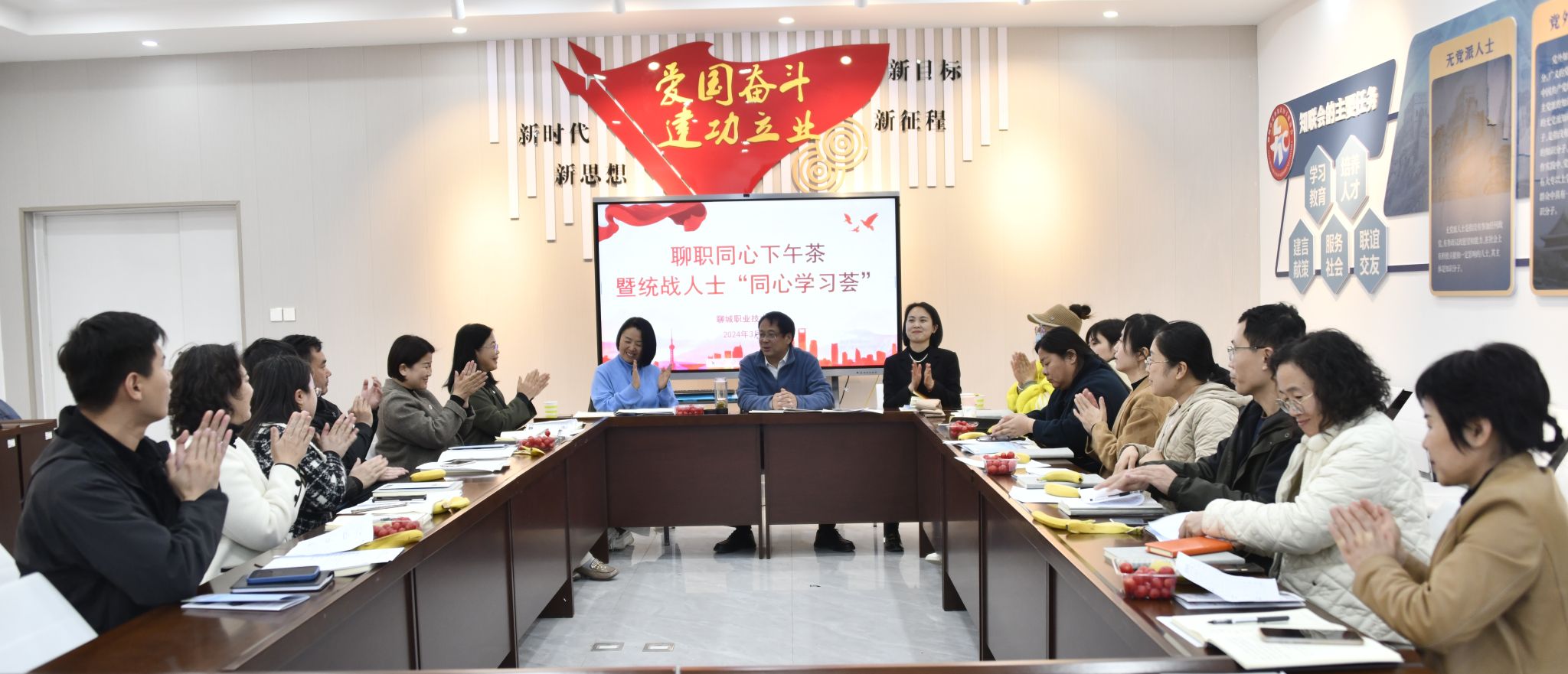 为加强党建引领,激发统战人士创造动能和创新活力,助推学校高质量发展,3月28日,学校党委统战部举办同心下午茶暨统战人士“同心学习荟”活动。党委委员、统战部部长崔爱民出席会议并讲话。会议由聊职知联会会长郭玉娟主持。