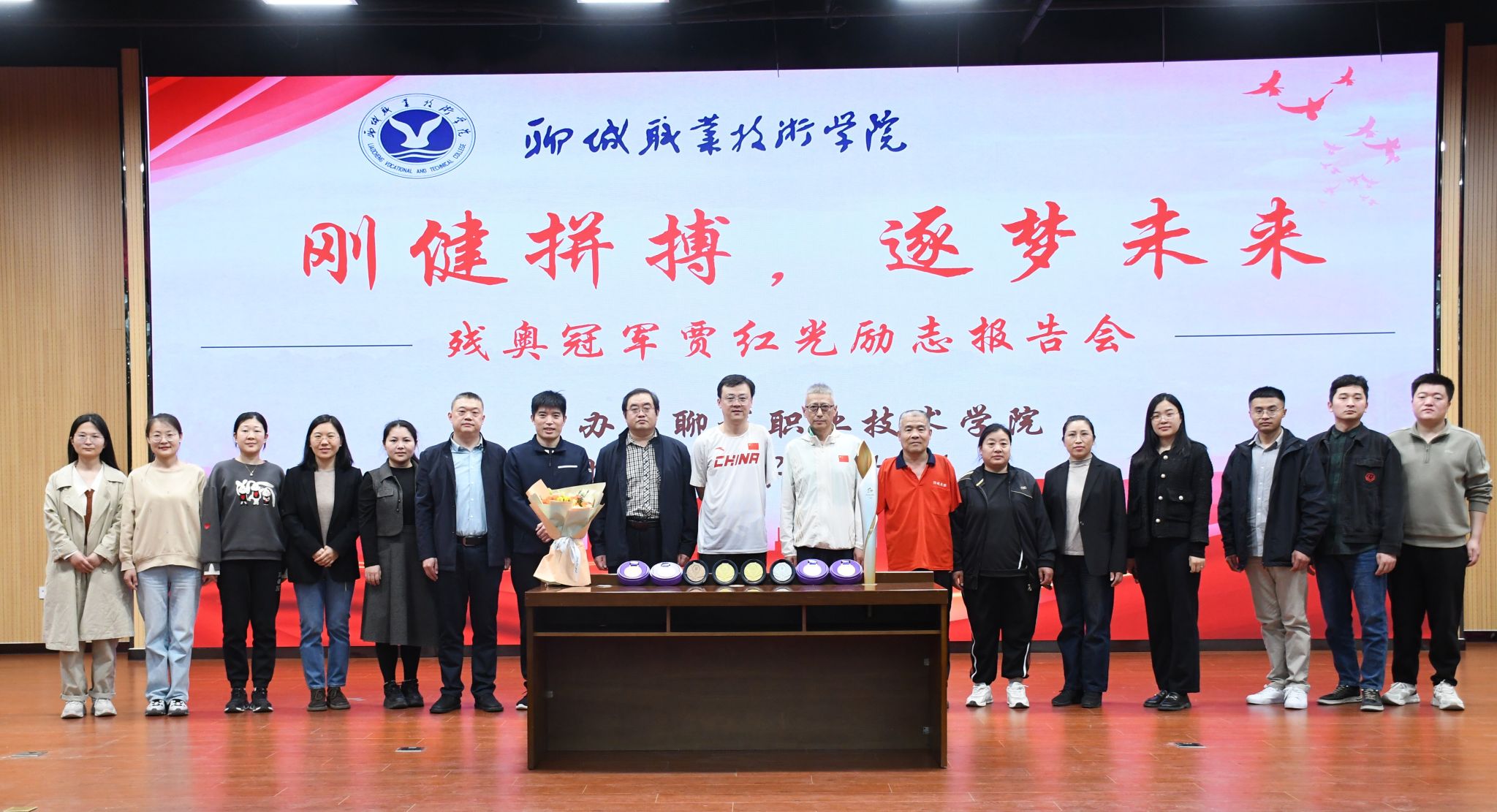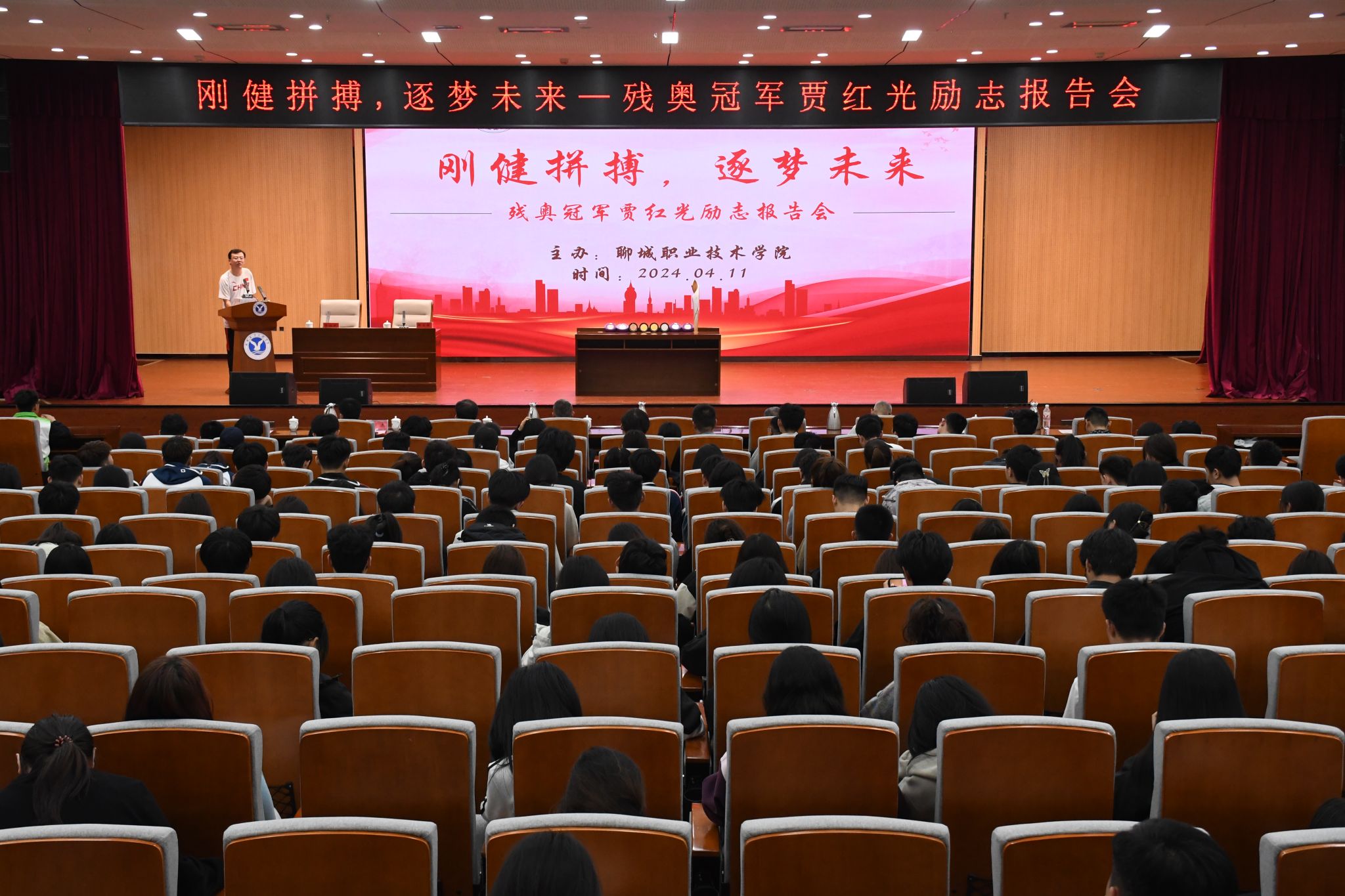 为传递拼搏进取精神,鼓励特殊群体学生自强奋斗,4月11日,聊城职业技术学院举办“刚健拼搏 逐梦未来”贾红光励志报告会。聊城市残疾人联合会党组成员、副理事长杭千芳,学校党委委员、副院长刘雪巍出席。学生工作部负责人郭立栋主持报告会。
