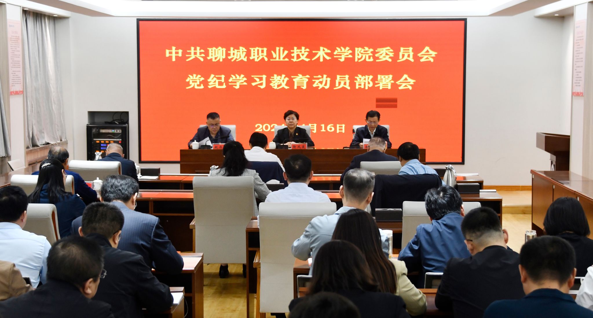 为深入贯彻落实习近平总书记关于党纪学习教育的重要讲话和重要指示批示精神,按照中央和省委、市委有关要求,安排部署学校党纪学习教育工作,动员全校党员干部统一思想、统一行动,以良好作风保证党纪学习教育走深走实,为学校高质量发展提供坚强纪律保障,4月16日,聊城职业技术学院召开学校党纪学习教育动员部署会。党委书记靳凤莲出席会议并讲话,党委领导班子成员参加会议。会议由党委副书记、院长徐龙海主持。