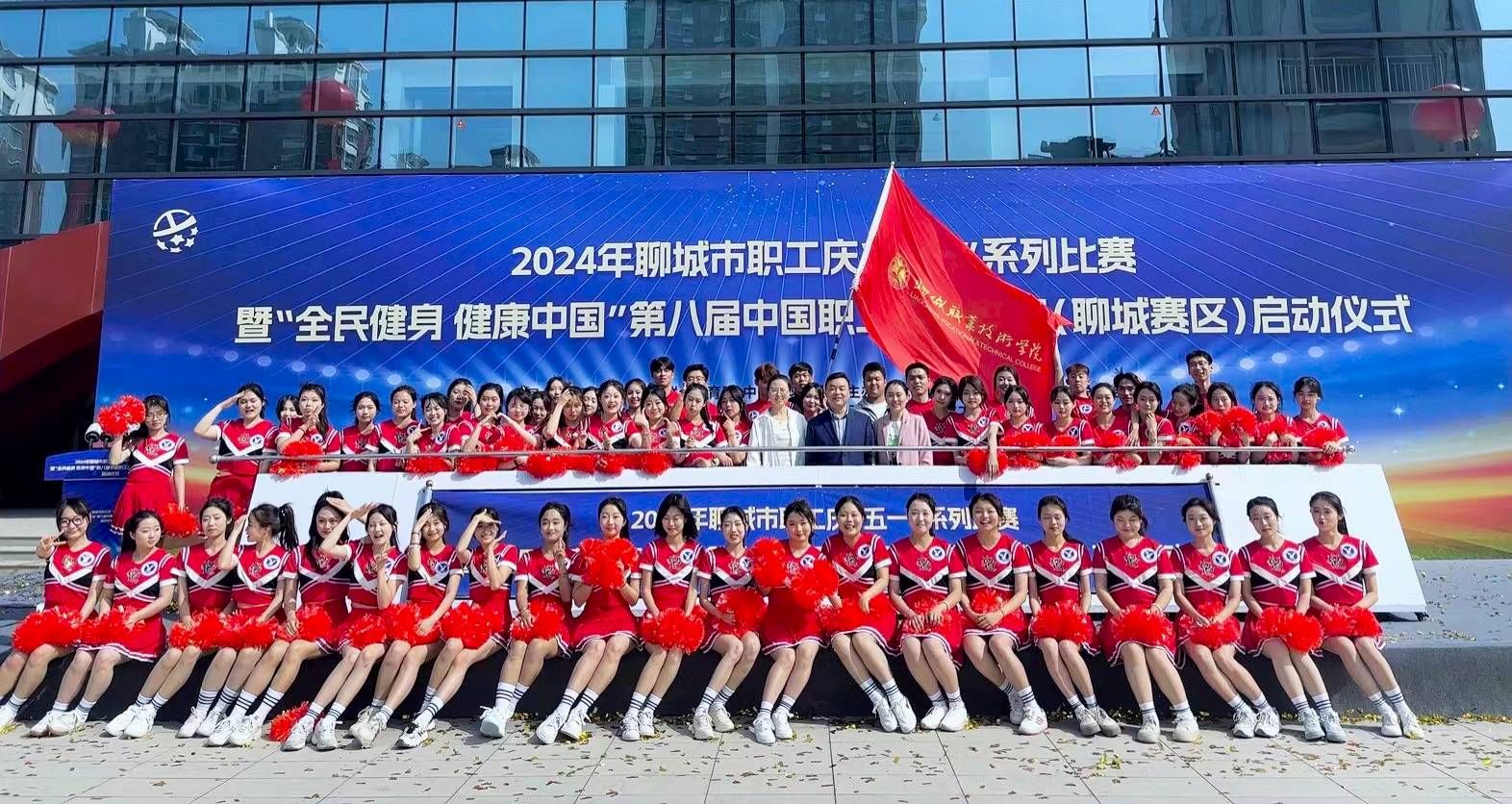 4月20日,2024年聊城市职工庆“五一”系列比赛暨“全民健身 健康中国”第八届中国职工足球联赛(聊城赛区)启动,聊城职业技术学院啦啦队用精彩的表演为本次比赛拉开了序幕。学校工会副主席王增朝参加开幕式。