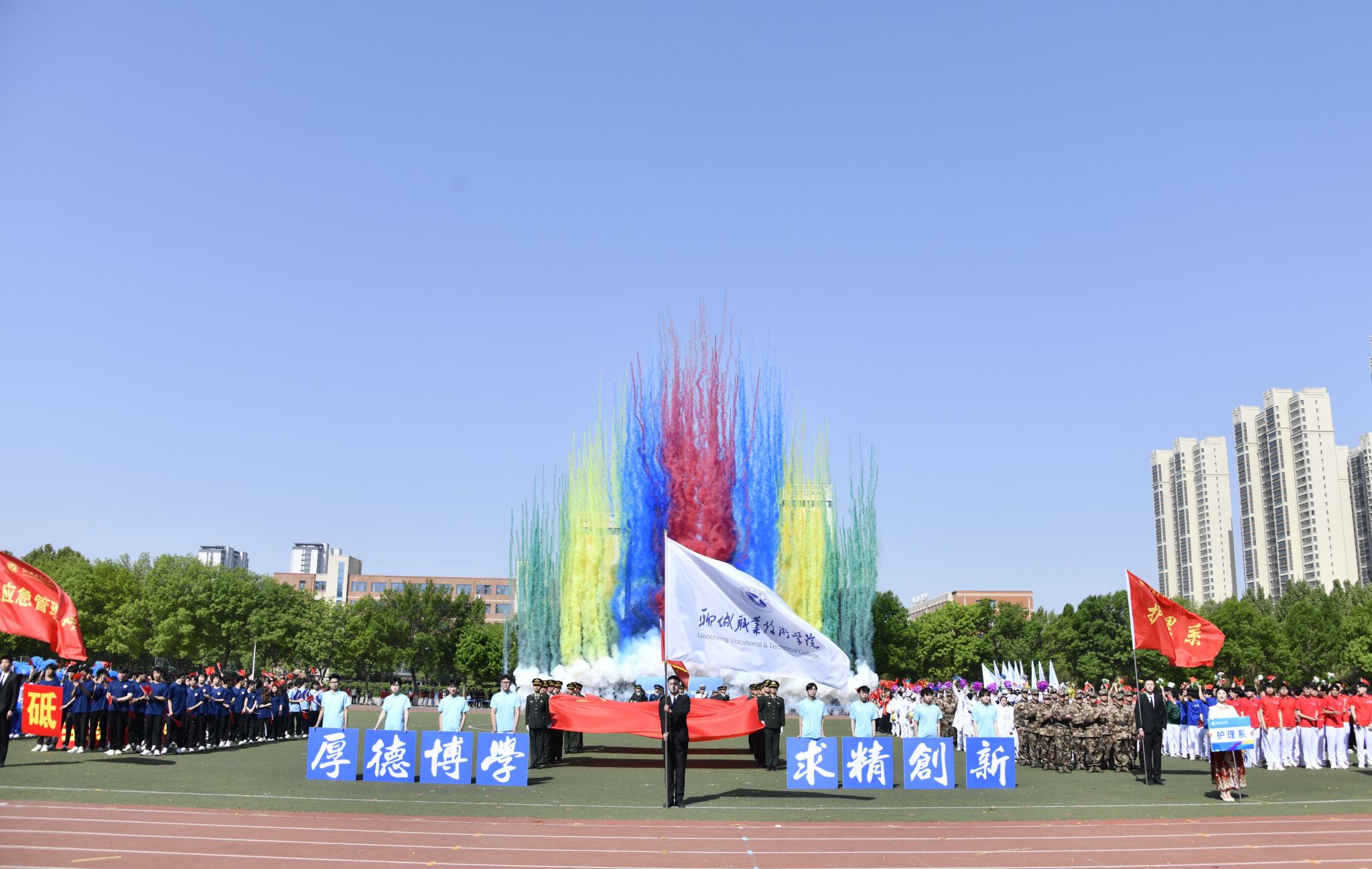 春日的聊职,百花争妍、春潮奔涌。4月25日8:00整,聊城职业技术学院第二十届田径运动会在南校区操场盛大开幕。