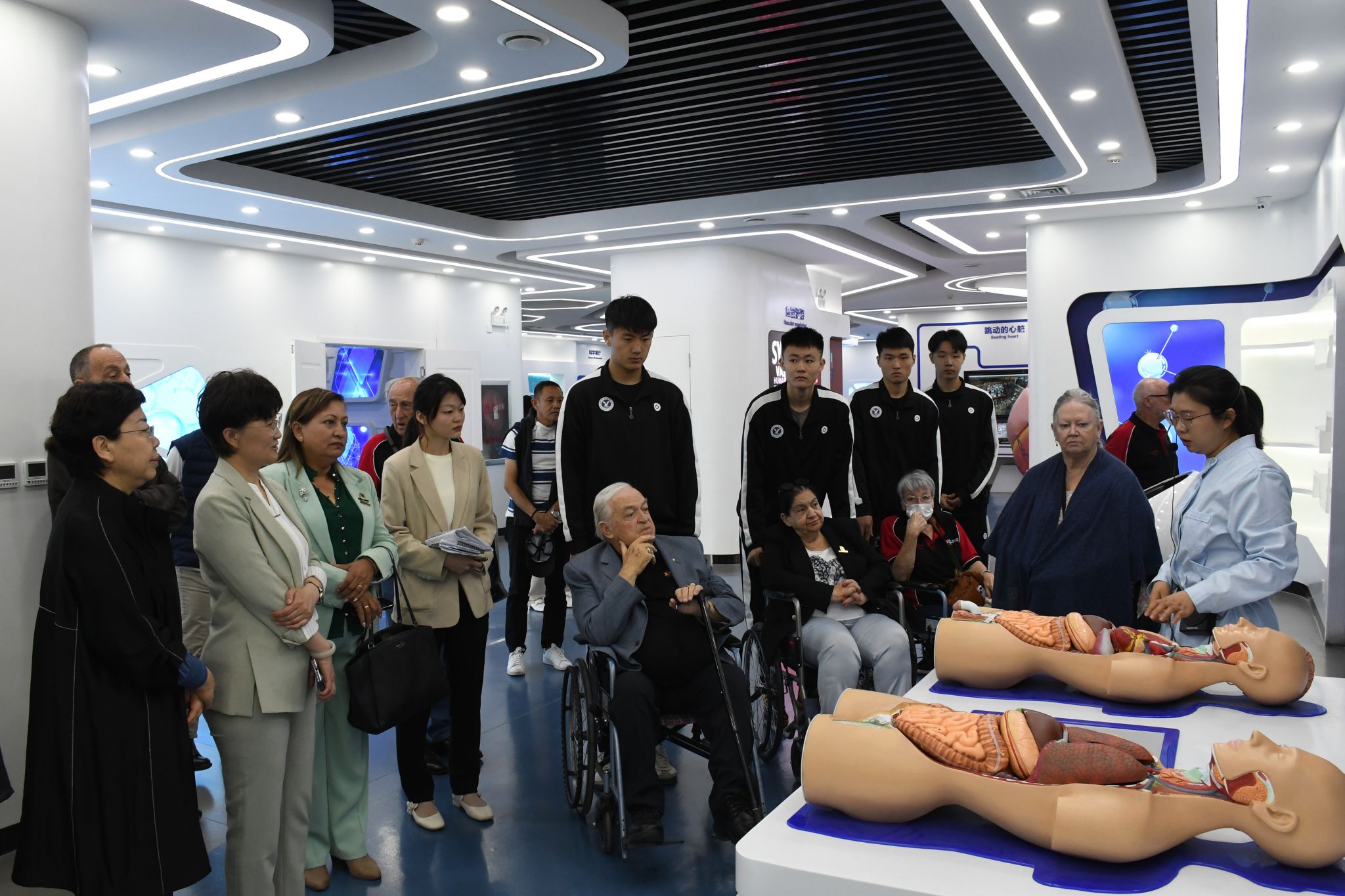 代表团一行首先参观了设在学校南校区的生命与健康科学馆。通过全方位、多维度展示生命科学、健康促进、公卫科普等相关知识,让客人们感受了现代化数字技术及超媒体虚拟技术创造的身临其境的沉浸式体验。