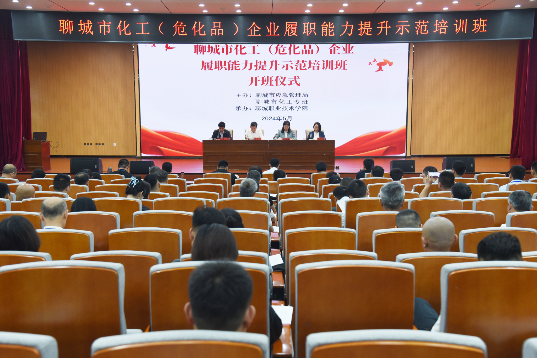 5月14日,聊城市化工(危化品)企业履职能力提升示范培训班开班仪式在聊城职业技术学院举办。此次培训由聊城市应急管理局、聊城市化工行业安全生产整治提升专项行动工作专班主办,聊城职业技术学院承办。聊城市政府副秘书长、市化工专班常务副主任高恒业,聊城职业技术学院党委委员、副院长刘雪巍参加开班仪式。