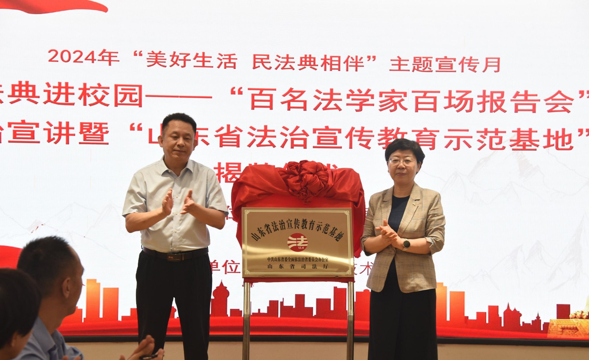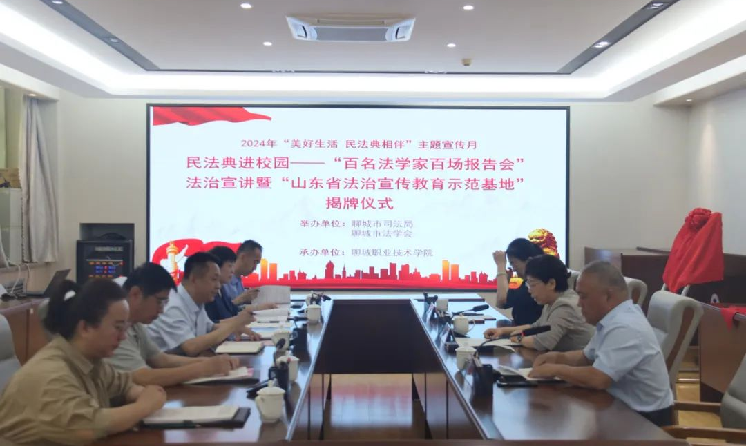 5月21日,由聊城市司法局、市法学会和聊城职业技术学院联合举办的2024年“美好生活 民法典相伴”主题宣传暨“山东省法治宣传教育示范基地”揭牌仪式在聊城职业技术学院举行。聊城职业技术学院党委书记靳凤莲,聊城市司法局党组书记、局长杨国强,市法学会三级调研员郝广俊及有关领导参加活动。
