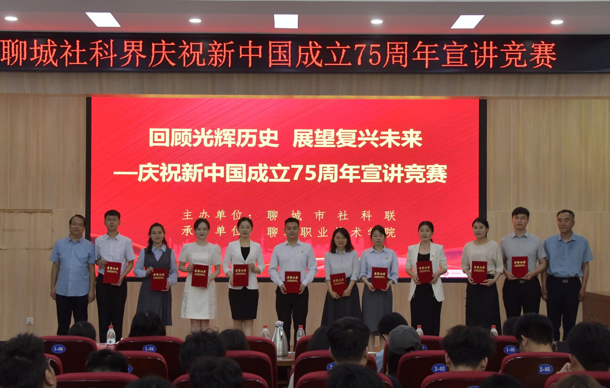 为庆祝新中国75周年华诞,歌颂伟大祖国在党的领导下取得的伟大成就,进一步打响“习语‘聊’亮”品牌,推动党的创新理论在聊城落地生根,5月23日,由聊城市社科联主办、聊城职业技术学院承办“回顾光辉历史,展望复兴未来——庆祝新中国成立75周年”宣讲竞赛圆满举办。