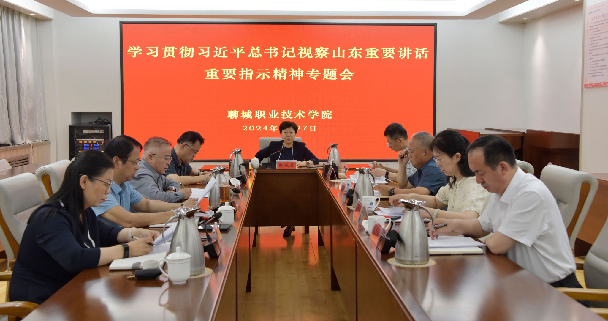 会议指出,习近平总书记再次亲临山东视察工作,为山东发展把航定向,在山东发展历史上具有重要里程碑意义。全校上下要把学习贯彻习近平总书记重要讲话精神作为当前和今后一个时期的重大政治任务,准确把握习近平总书记对山东工作的总定位、新要求,奋力谱写中国式现代化山东篇章贡献聊职力量。