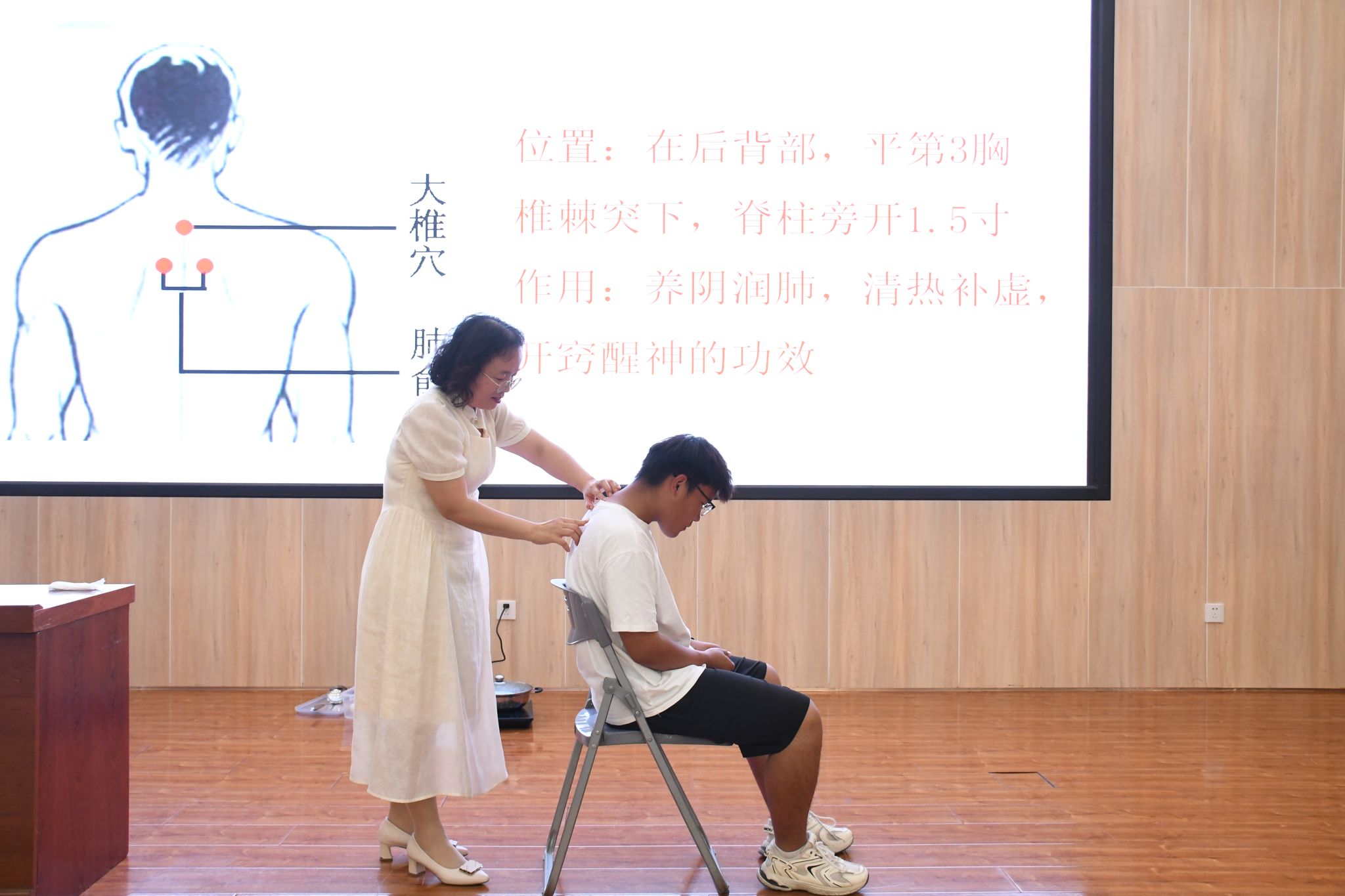 闫金红教授从中西医两大方面剖析治疗感冒的方法。在中医治疗方法中,蛋滚疗法来帮助人们缓解咳嗽,其方法便利,取材简单,缓解效果明显;热水杯疗法将散热较快的水杯,使其按照对应穴位,以达到祛除寒邪效果。考虑到夏天炎热,心情容易烦躁,向大家推荐了中医版的香囊,用于提神安神;在预防感冒方面,讲解了食疗的方法,并向大家推荐食用葱豉汤预防感冒。在西方医疗方面,她向大家科普了西药的相关知识。同时,提醒同学们,多吃水果蔬菜,注意饮食,合理运动,注意作息规律。