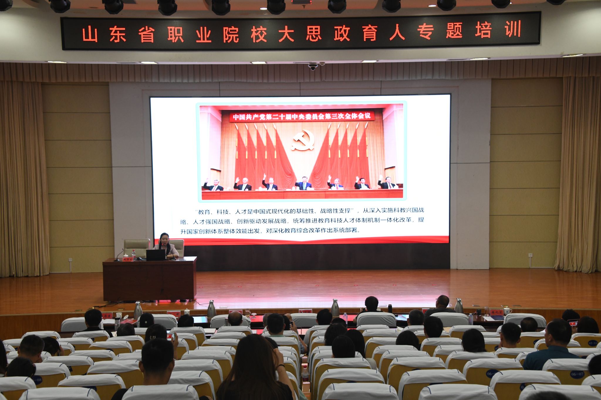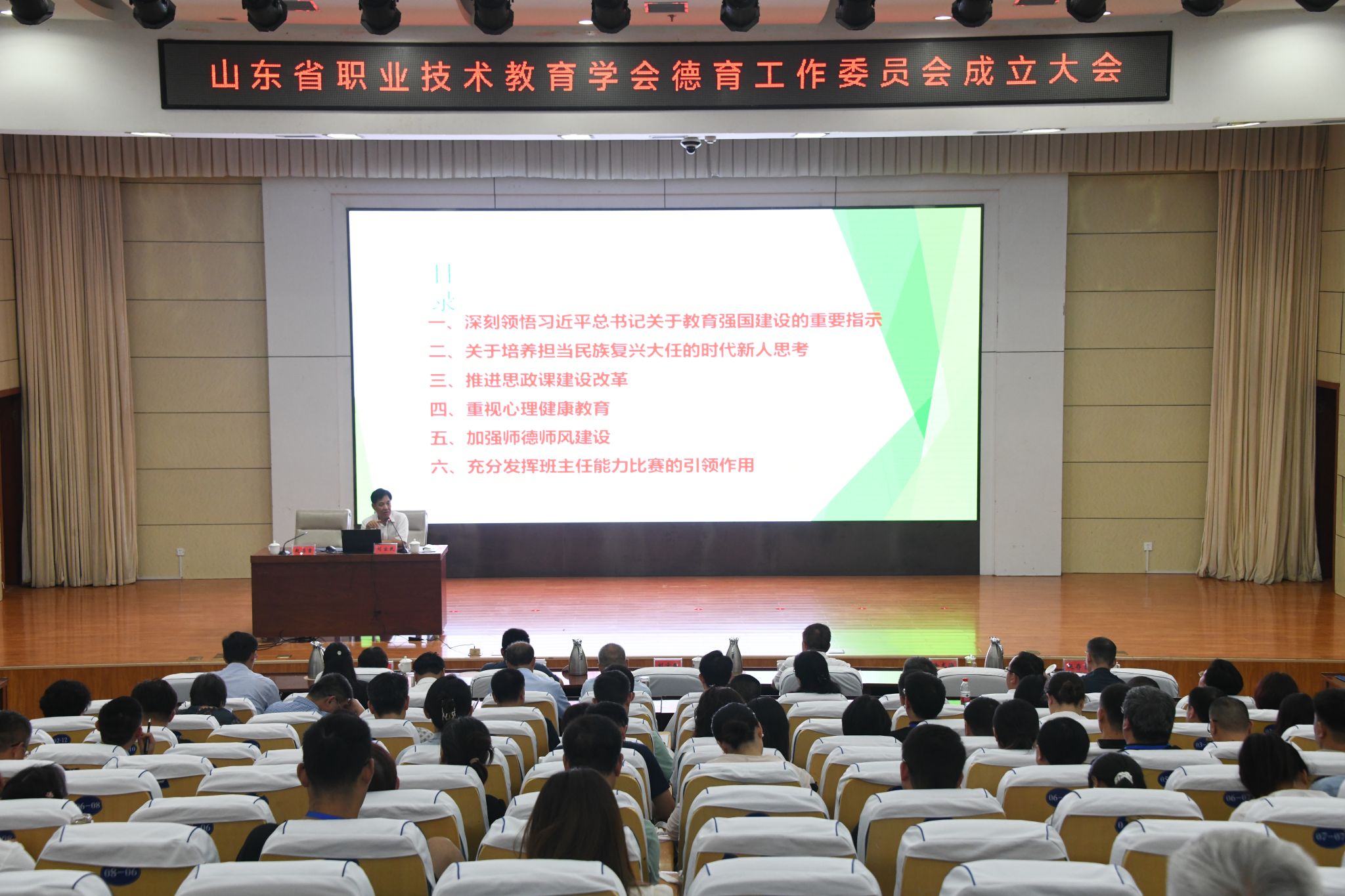 成立大会后,举办了职业院校大思政育人专题培训。刘宝民作了题为《推动立德树人根本任务走深走实》的报告。他从深刻领悟习近平总书记关于教育强国建设的重要指示、关于培养担当民族复兴大任的时代新人思考、推进思政课建设改革等六个方面,深刻阐述了推动立德树人根本任务走深走实的实施举措,为职业院校开展德育工作提供了新路径。