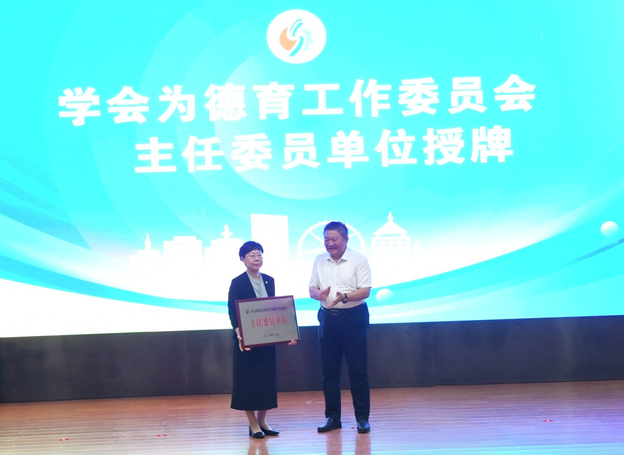石忠为德育工作委员会主任委员单位授牌,靳凤莲代表学校受牌。靳凤莲还为德育工作委员会副主任委员及委员代表颁发了聘书。